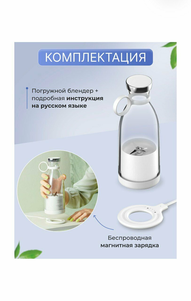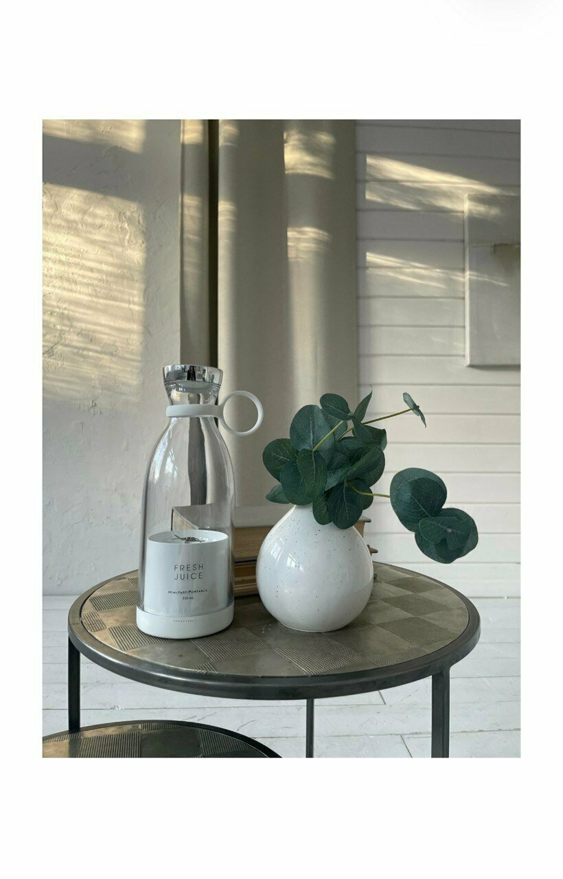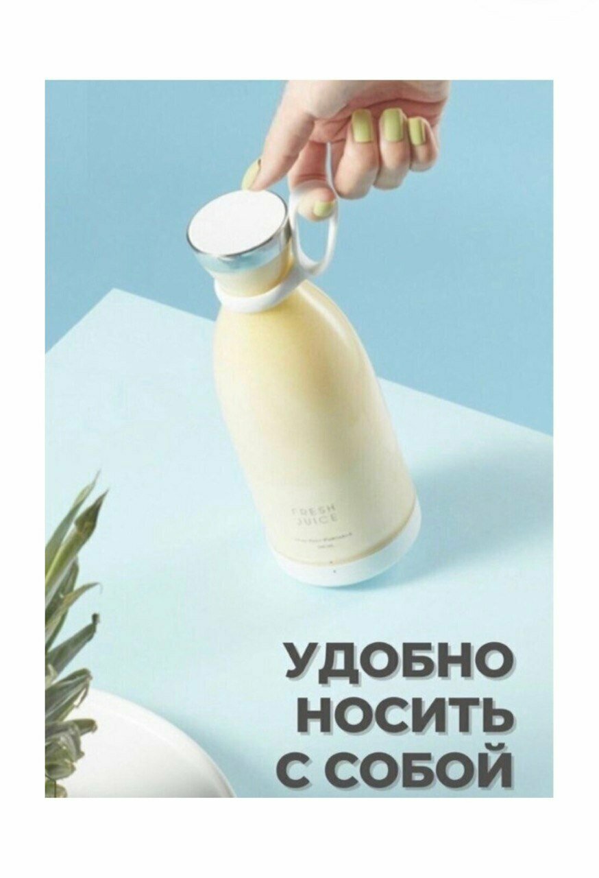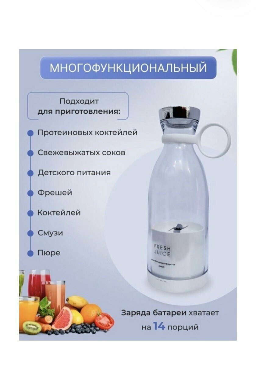 Портативный блендер-бутылка для смузи NATURAL JUICEбелый /Беспроводной миксер на 350 мл с хромированной крышкой/Блендер-соковыжималка интересное: