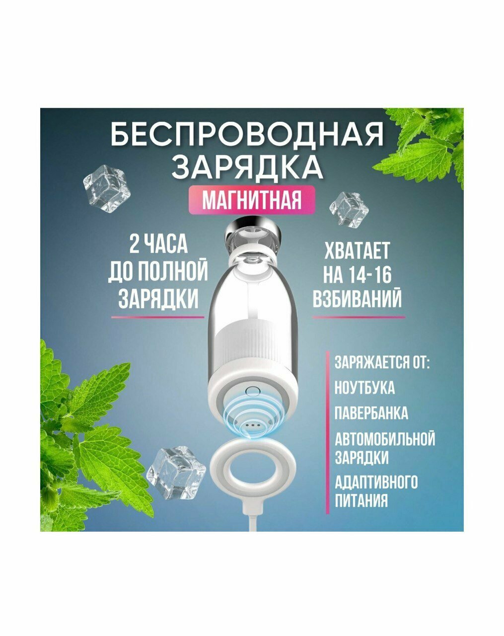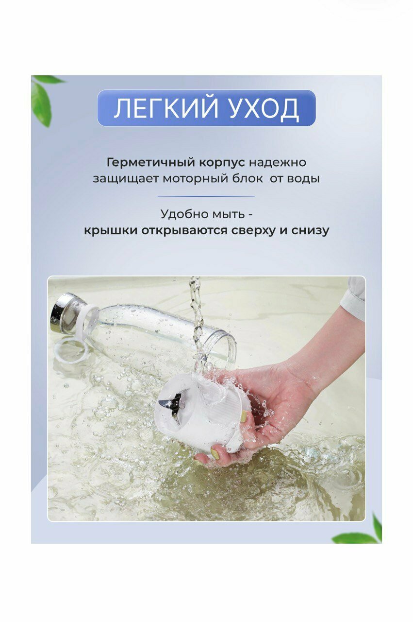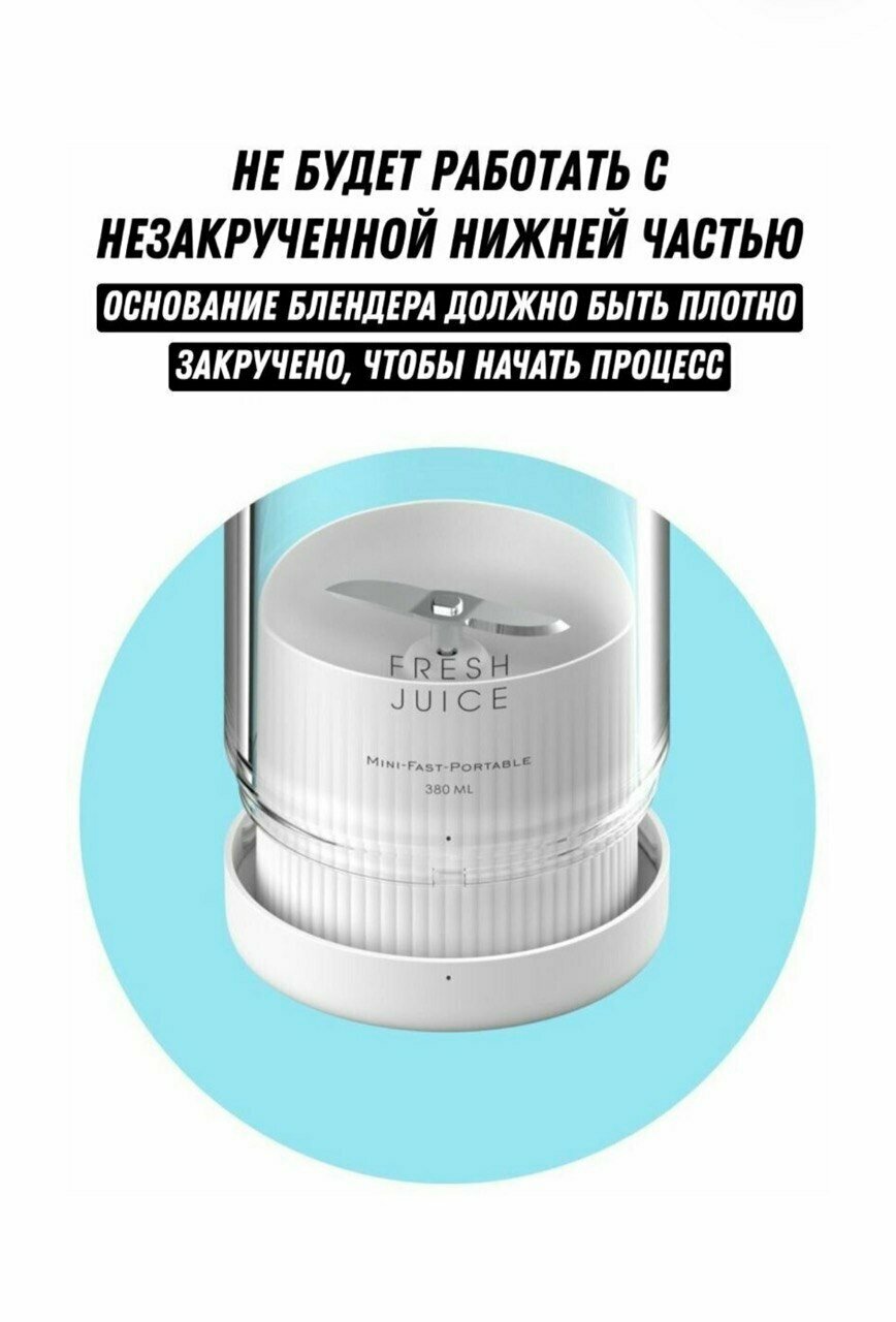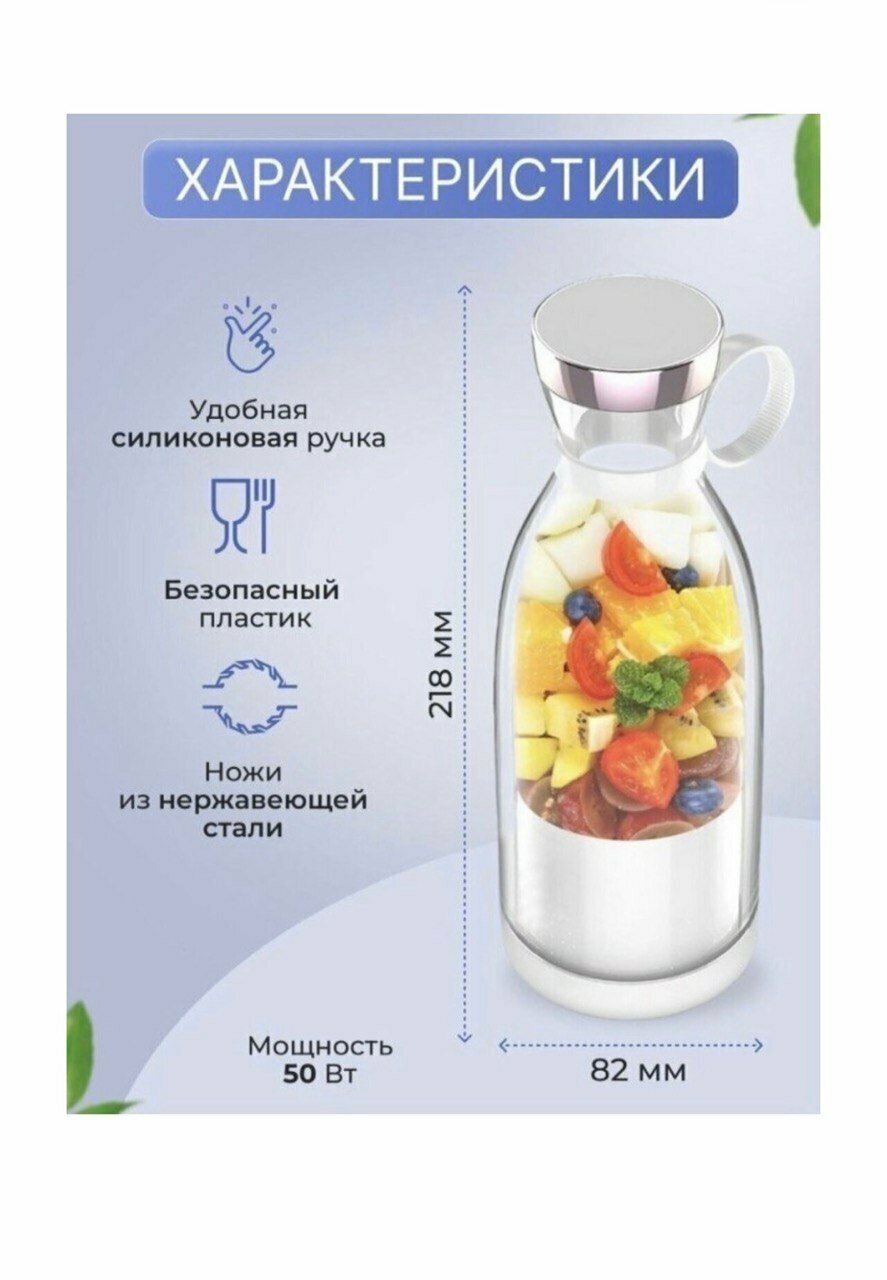 Портативный блендер-бутылка для смузи NATURAL JUICEбелый /Беспроводной миксер на 350 мл с хромированной крышкой/Блендер-соковыжималка интересное: