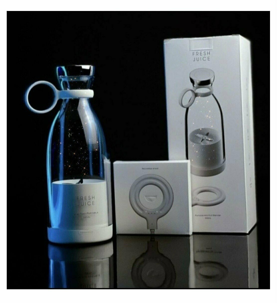 Купить Портативный блендер-бутылка для смузи NATURAL JUICEбелый /Беспроводной миксер на 350 мл с хромированной крышкой/Блендер-соковыжималка