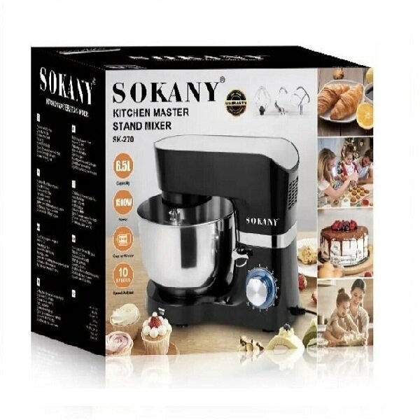 Купить Миксер планетарный KITCHEN MASTER STAND MIXER. Кухонная машина с ручной чашей, тестомес для дома, 5 режимов работы. SOKANY SK-270. 6.5 литров