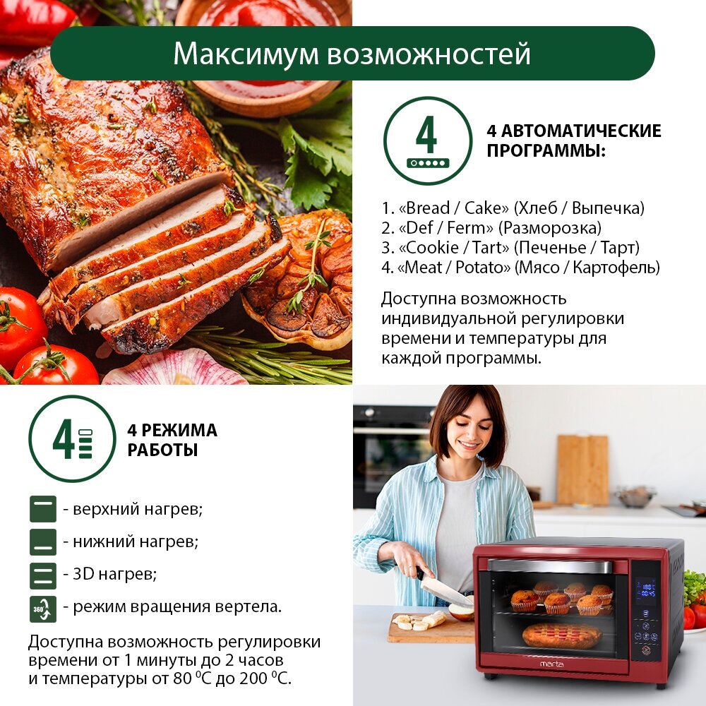 Marta MT-4264 Мини-печь бордовый гранат . интересное: