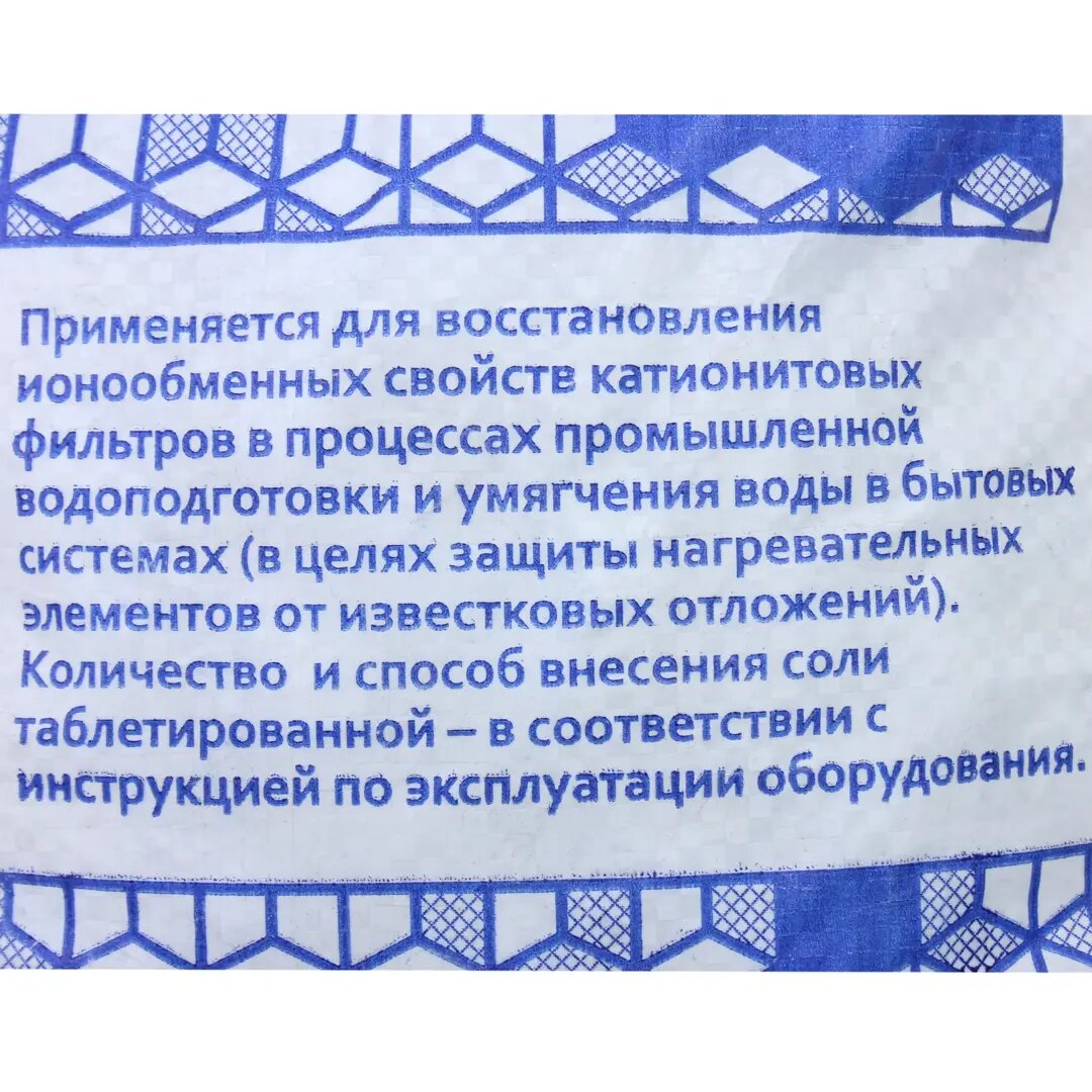 | Плюсы: | Пользуемся не первый год в американских фильтрах в котельной для очистки воды. Фильтры живы, вся техника, использующая воду, тоже. Думаю, это лучшая характеристика для такой соли. |