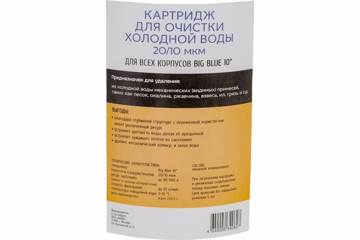 Картридж Аква Про 10ВВ для холодной воды 5 микрон 765