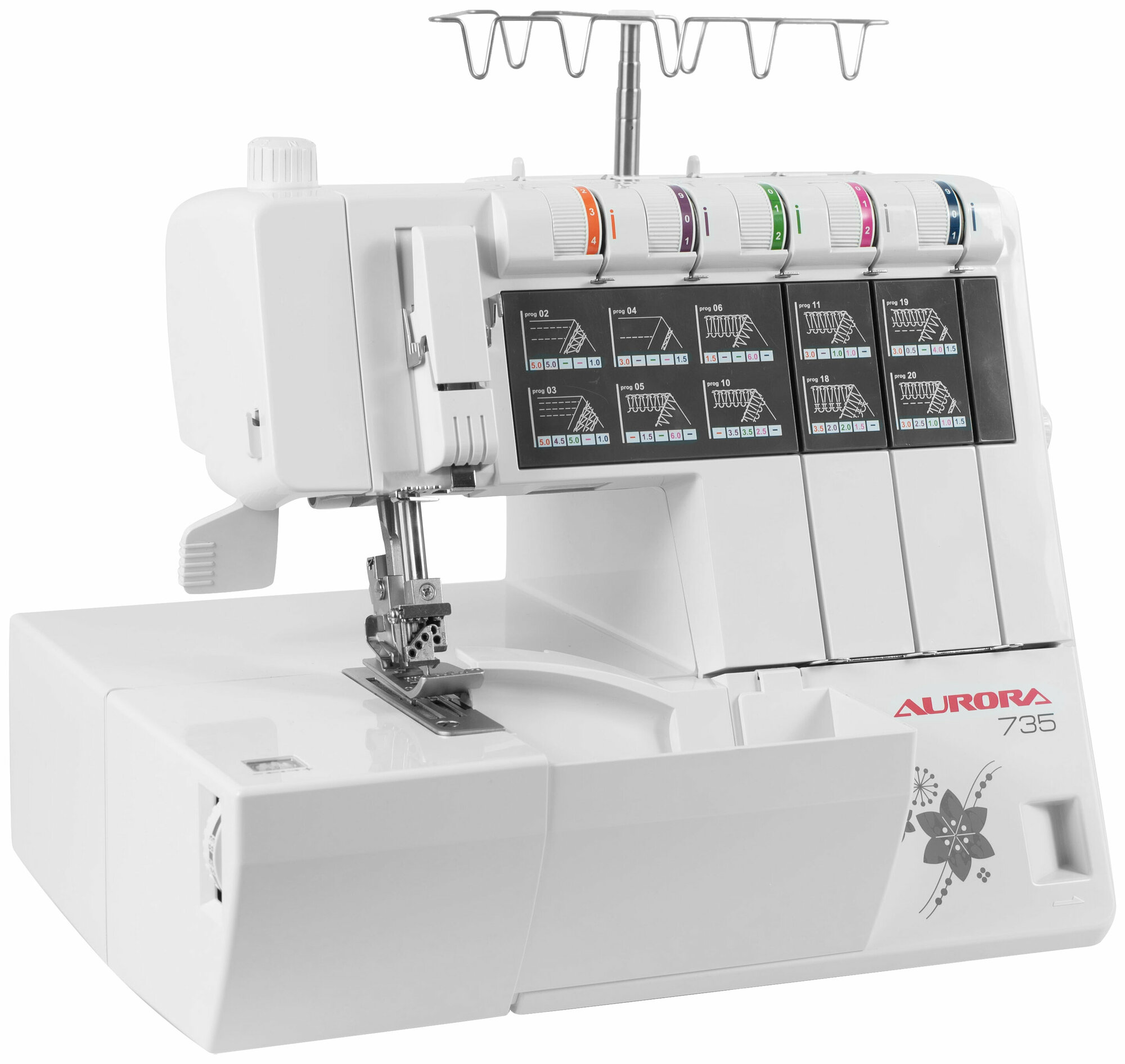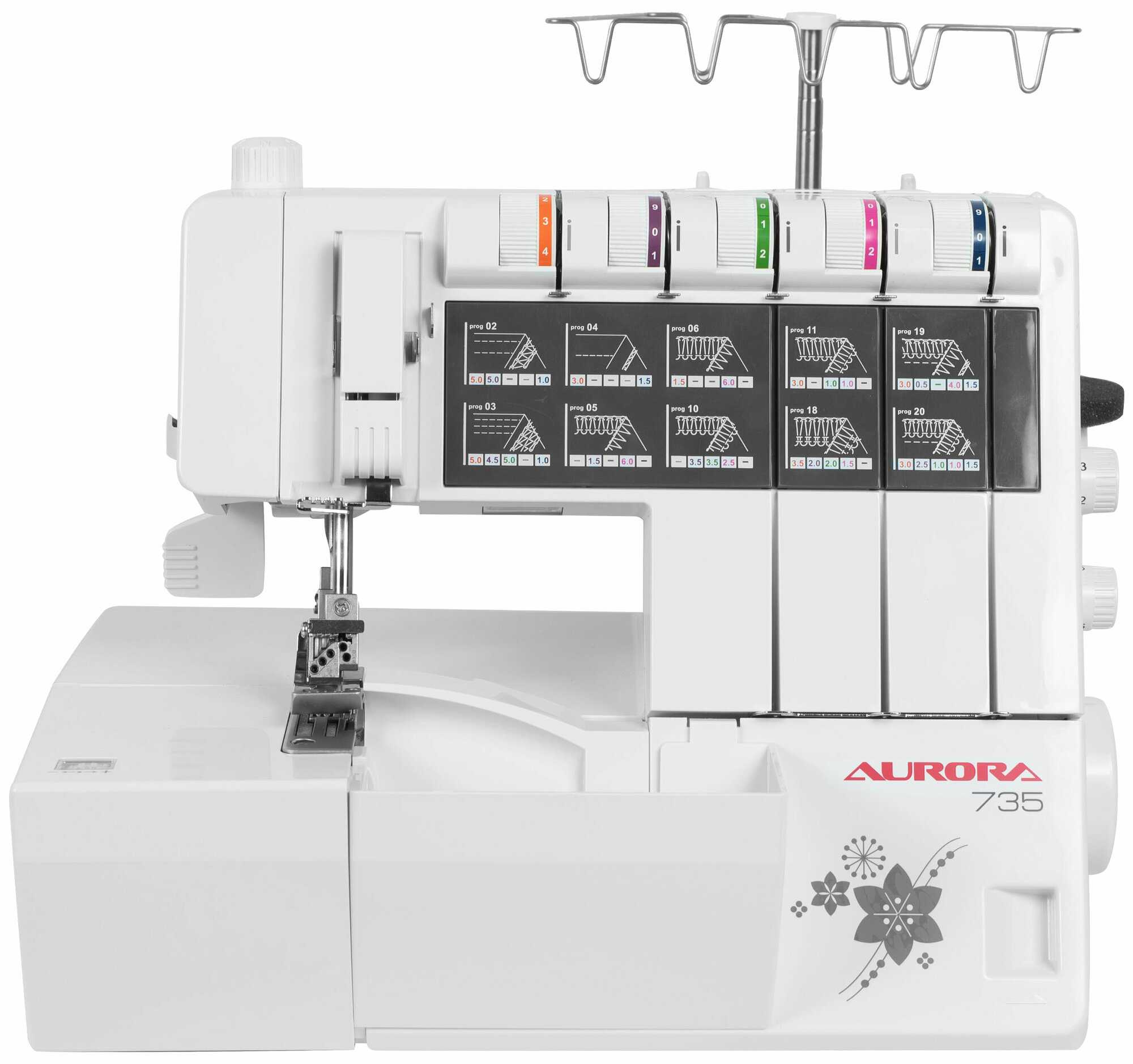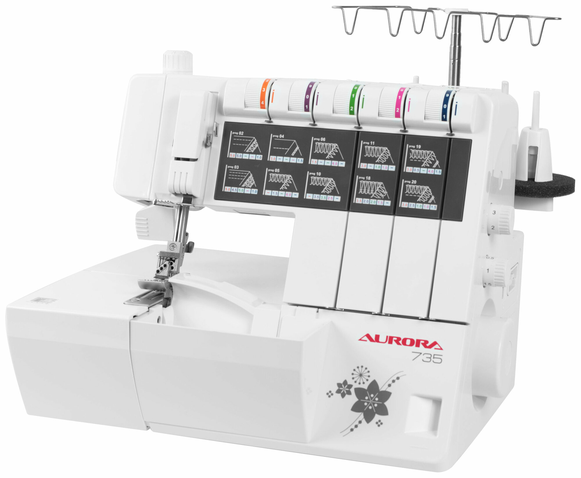 Купить Коверлок Aurora 735 Pro Edition / набор лапок в комплекте / для всех типов тканей / 2,3,4,5 ниточный / LED подстветка / помощник заправщика нижнего петлителя
