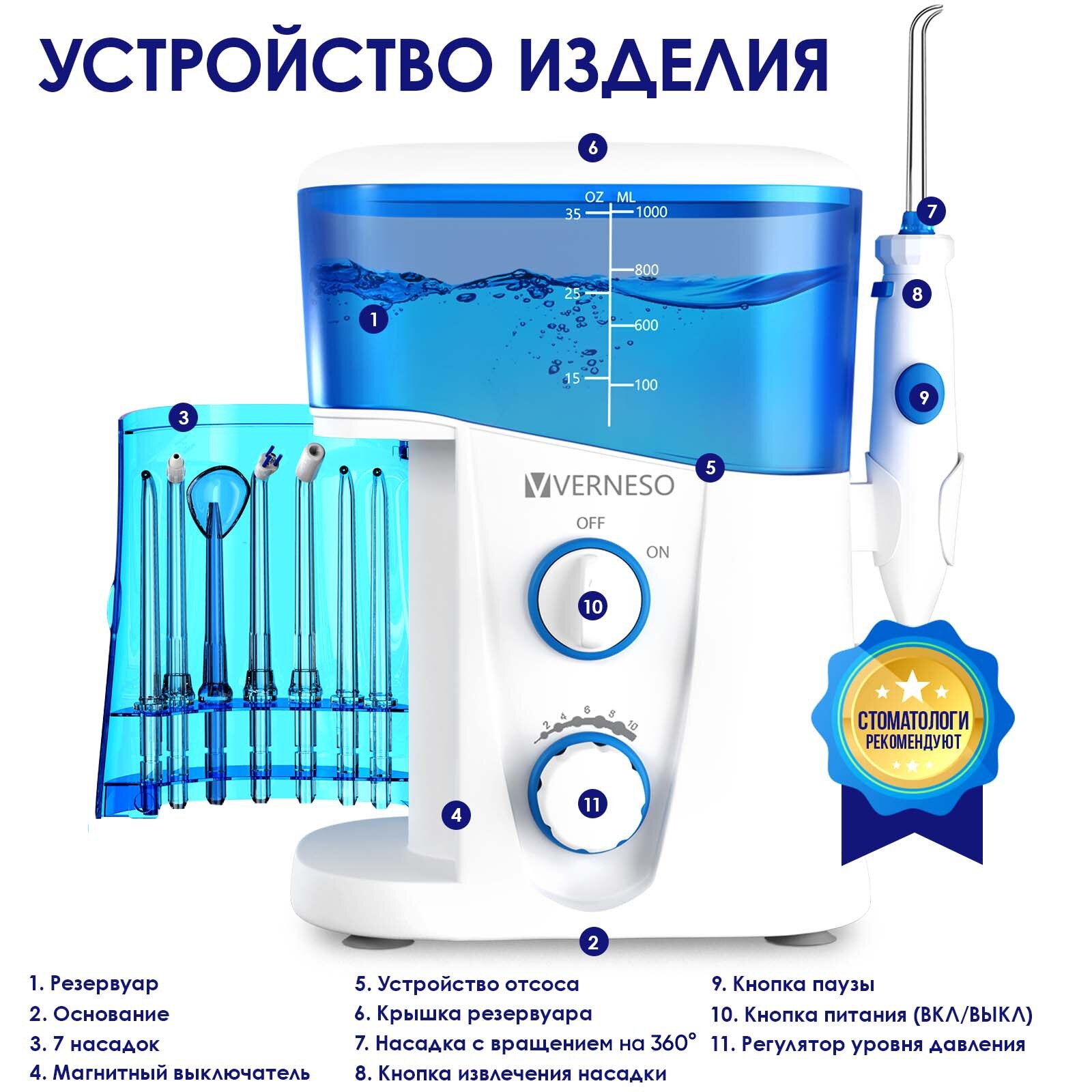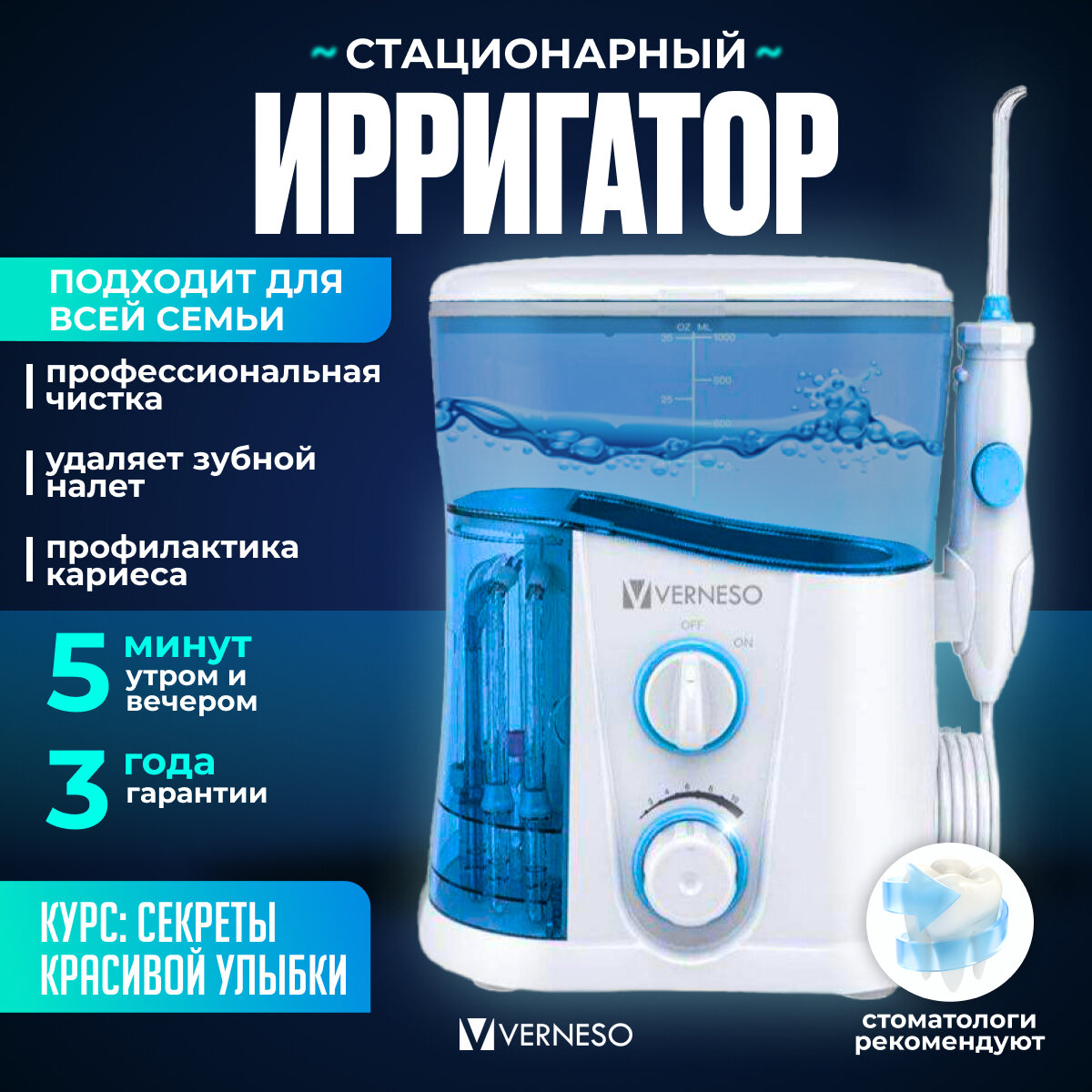 Ирригатор cтационарный для полости рта и отбеливания зубов, для чистки брекетов и языка, для десен, против зубного камня VERNESO, белый интересное: