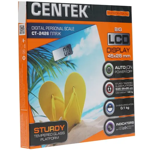Весы напольные CENTEK CT-2426 Пляж, электронные, 180 кг, 0,1 кг, LCD 45x28, размер 26х26см