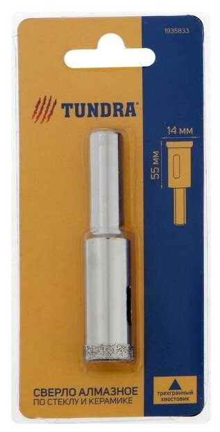 Сверло алмазное по стеклу и керамике TUNDRA, трехгранный хвостовик, 14 х 65 мм