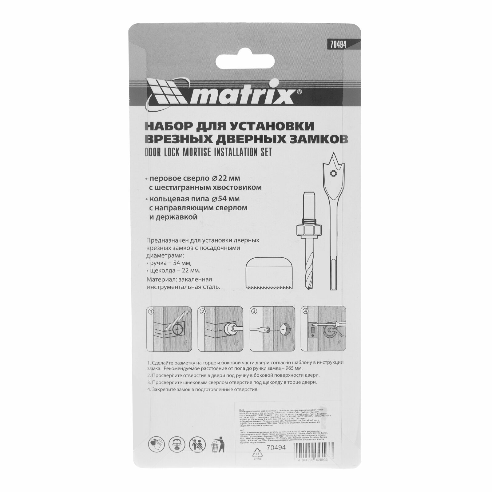 Набор для установки врезных замков, 22 мм/54 мм (перовое сверло/кольцевая пила) Matrix 70494