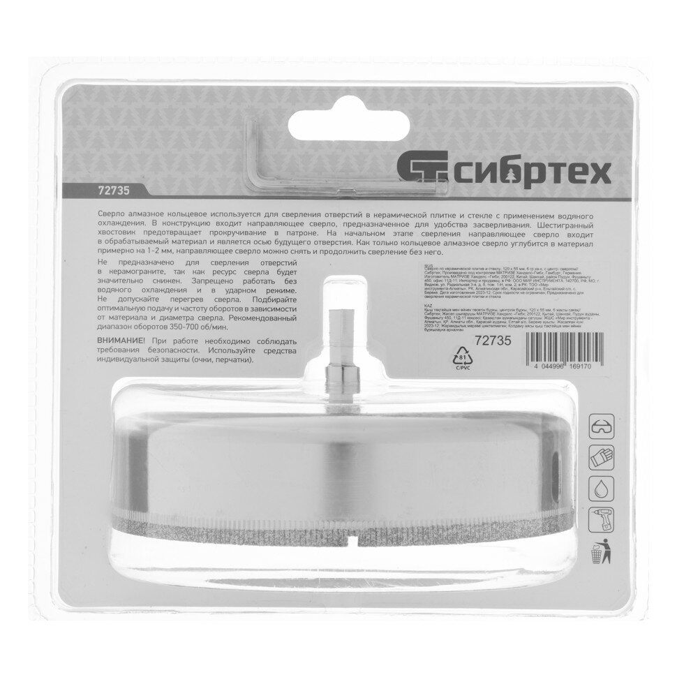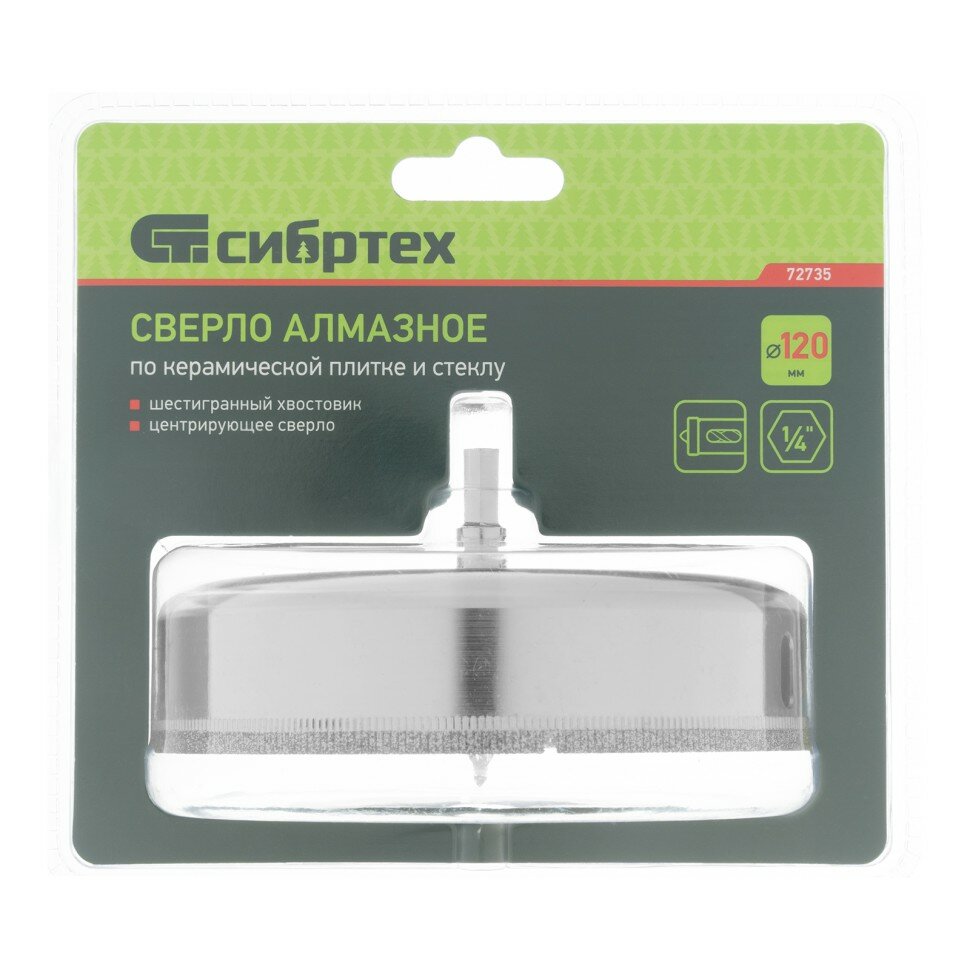 Купить Сверло по керамической плитке и стеклу Сибртех 120 х 55 мм, 6 гр.хв-к, с центр. сверлом 72735