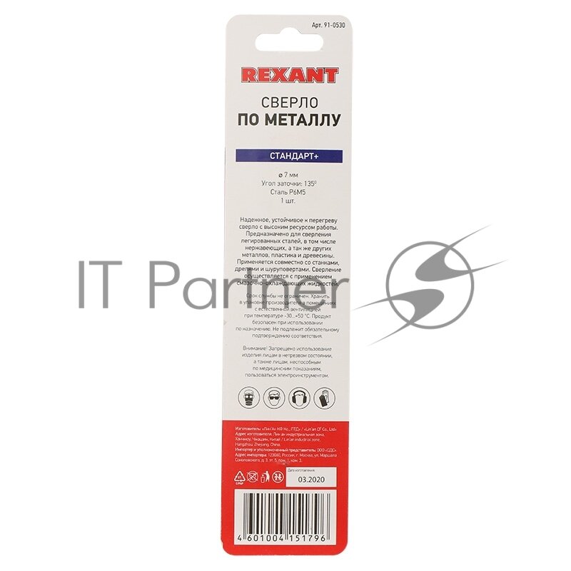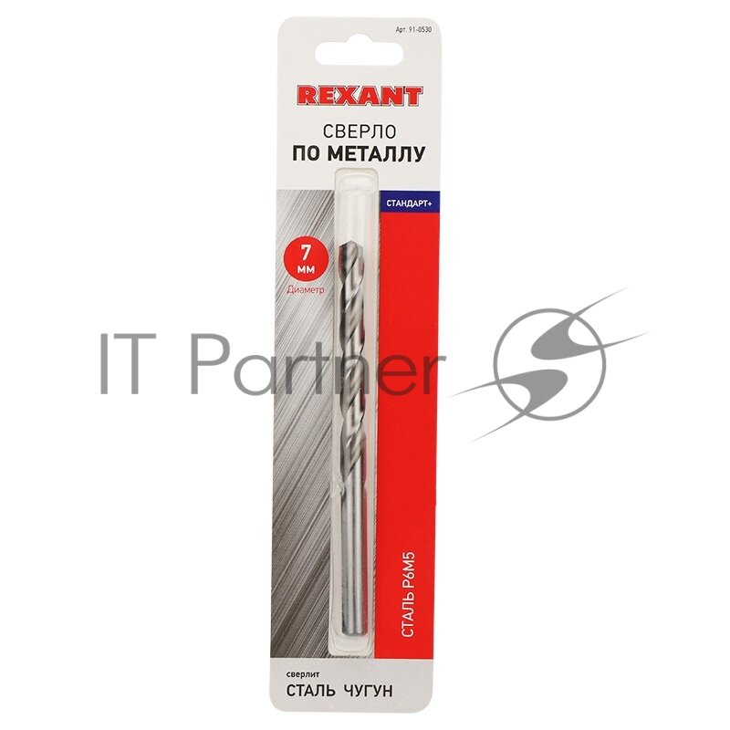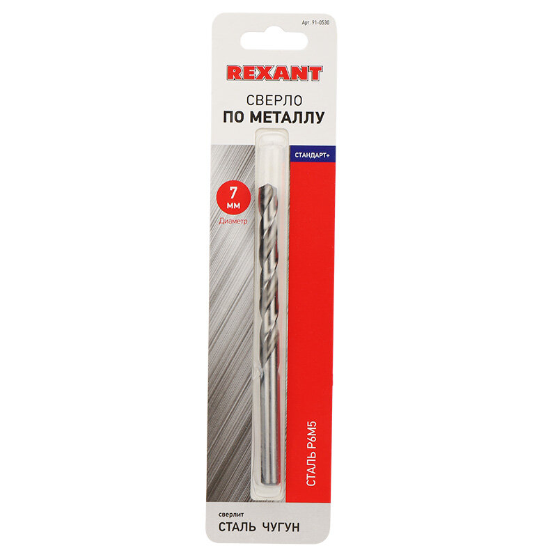 Сверло по металлу 7мм «Стандарт+» (P6M5 M-2) (1 шт. в блистере) DIN 338 REXANT 1 упак арт. 91-0530