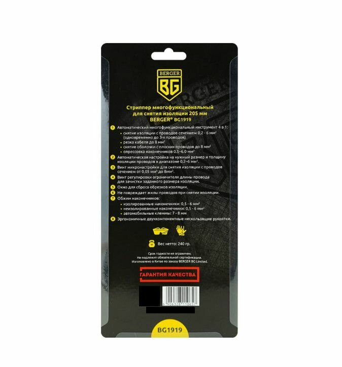 Berger BG Стриппер многофункциональный для работы с кабелем (снятие изоляции, резка кабеля, опрессовка наконечников) BG1919
