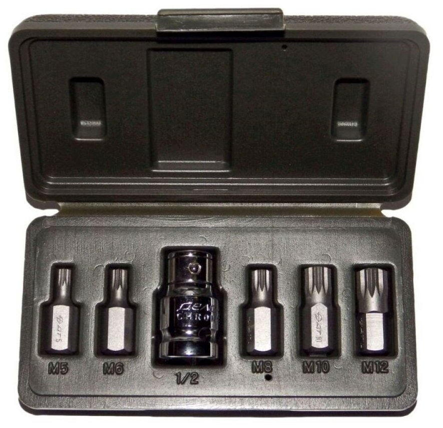 Набор вставок 1/2 SPLINE 6 предм, М5 М6 М8 М10 М12 х 30 мм переходник шестин\гр 3/8хкв,1/2 ДТ/5