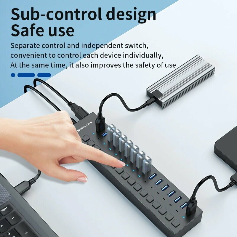 Хаб Acasis USB 3.0 HUB With Individual Power Switches 12V 7.5A HS-716PB (16 портов) Black интересное: