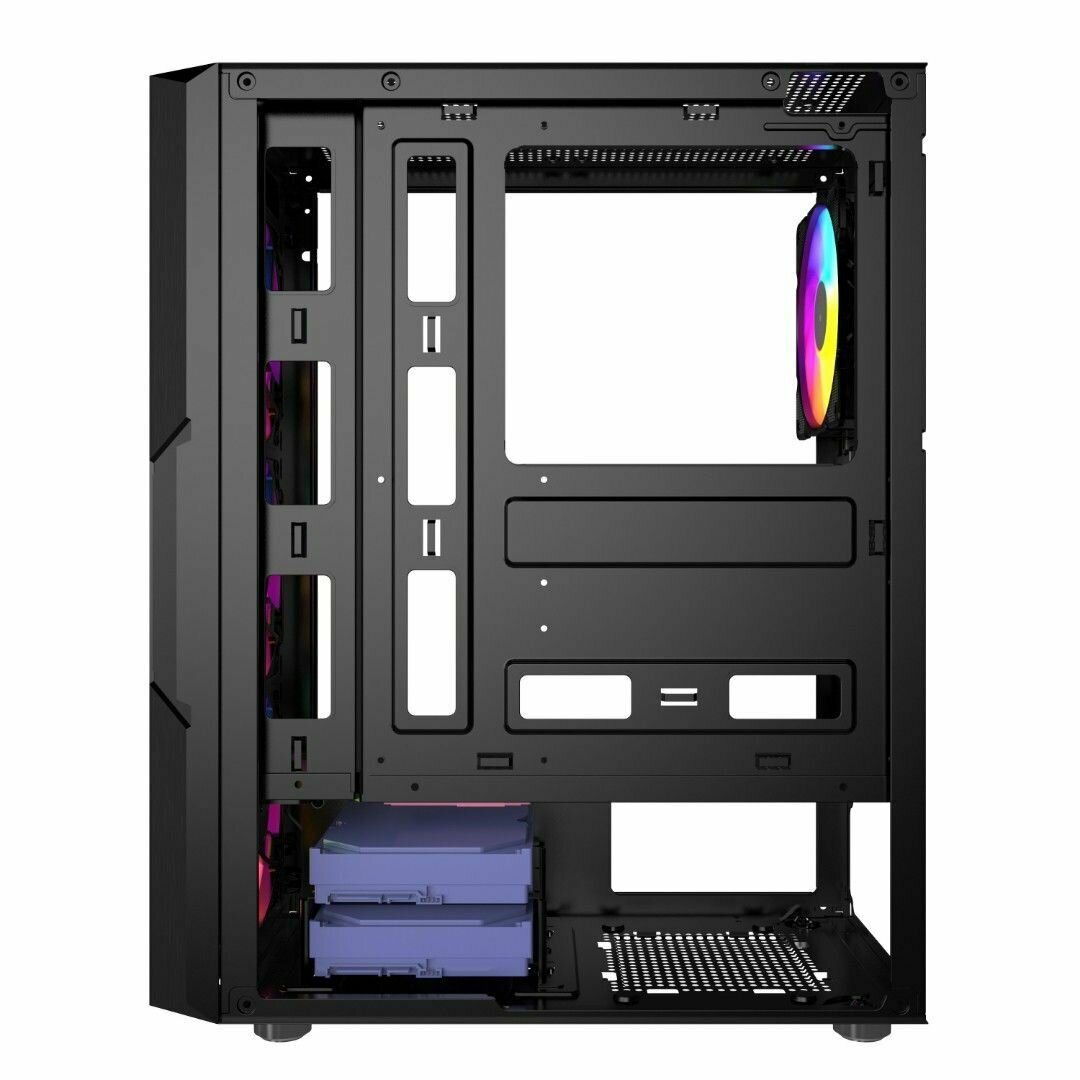 Powercase Mistral T4b, Tempered Glass, 4X 120MM 5-COLOR Fan, Чёрный, ATX (cmitb-l4) .