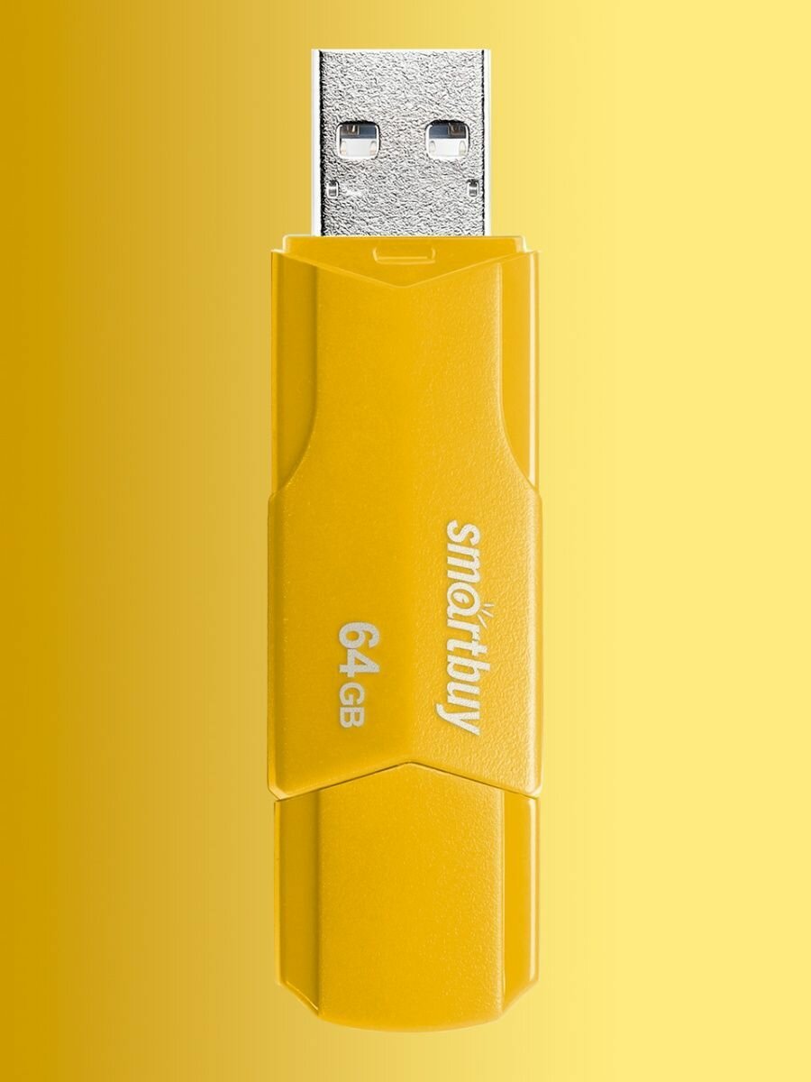 Флешка Smartbuy 64GBCLU-Y, 64 Гб, USB2.0, чт до 25 Мб/с, зап до 15 Мб/с, желтая