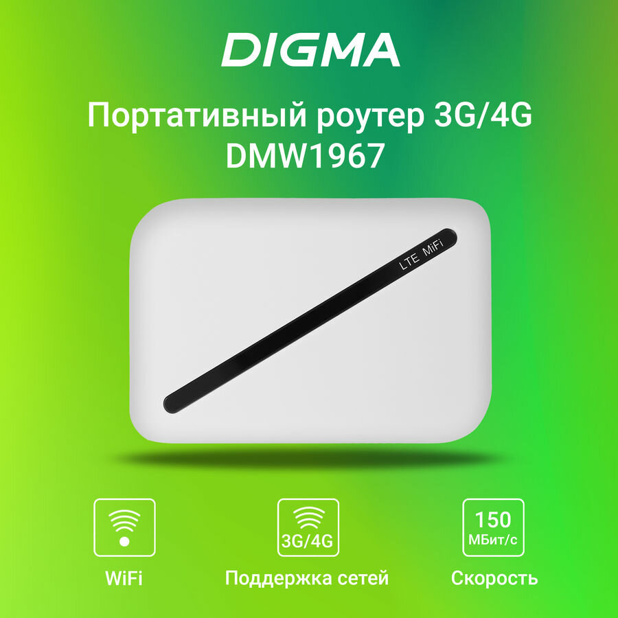 Модем Digma Mobile WiFi DMW1967 3G/4G, внешний, белый [dw1967wh]