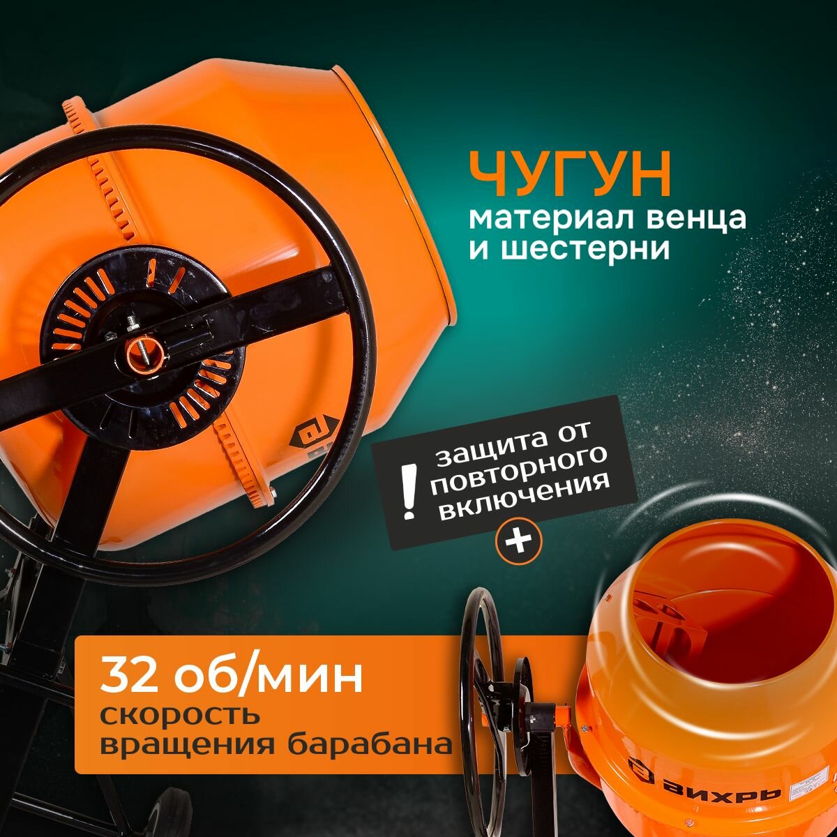 Бетономешалка Вихрь БМ-20АЧ электрич. бар.:205л г.р.:140л 900Вт (74/1/20) интересное: