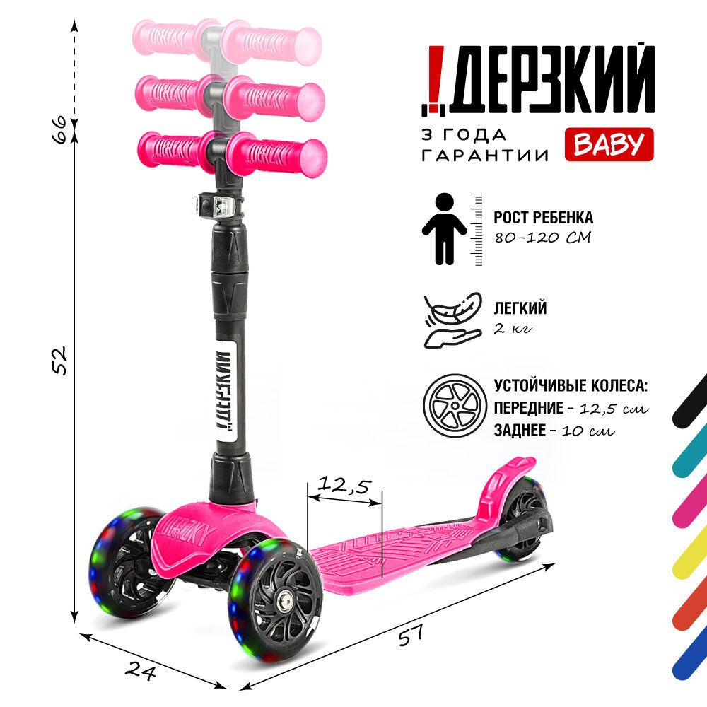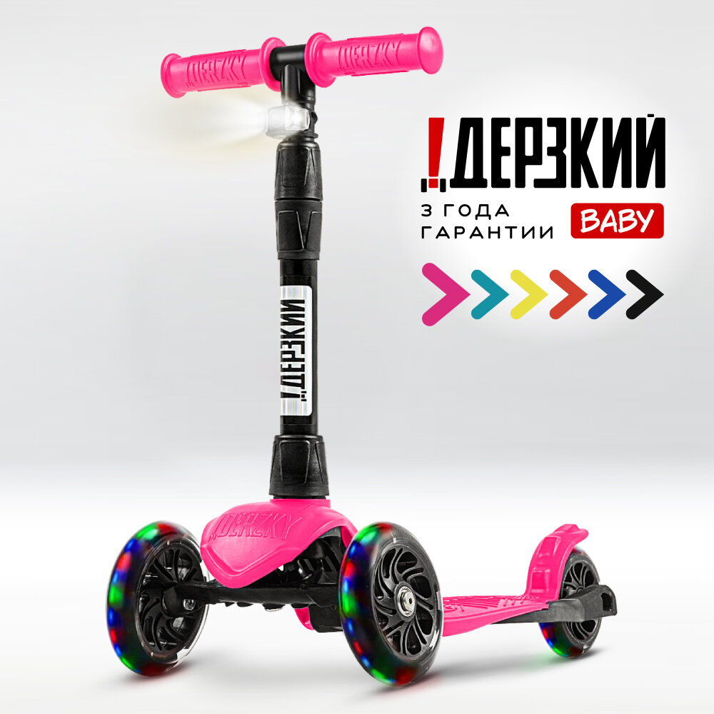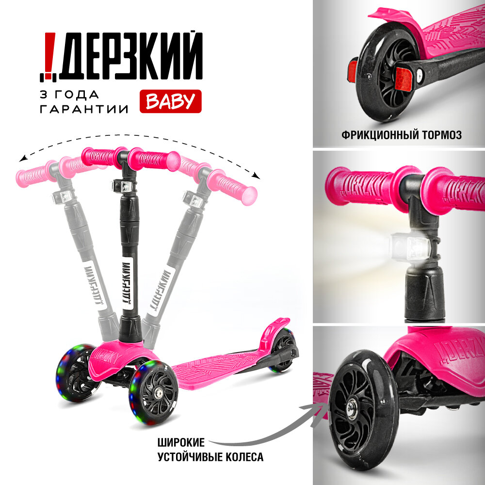 Купить Самокат детский трехколесный 1-5 лет !Дерзкий BABY Стайл (светящиеся колеса, усиленная рама), фуксия