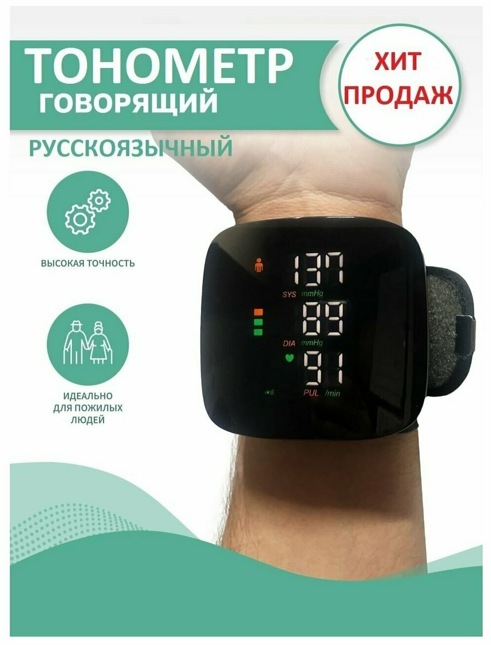 Цифровой тонометр / тонометр на запястье / автоматический голосовой тонометр / аккумуляторный / зарядка USB / черный интересное: