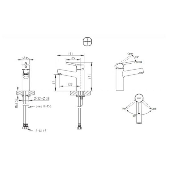 | Угол поворота рукоятки гориз. | 90 градусов |