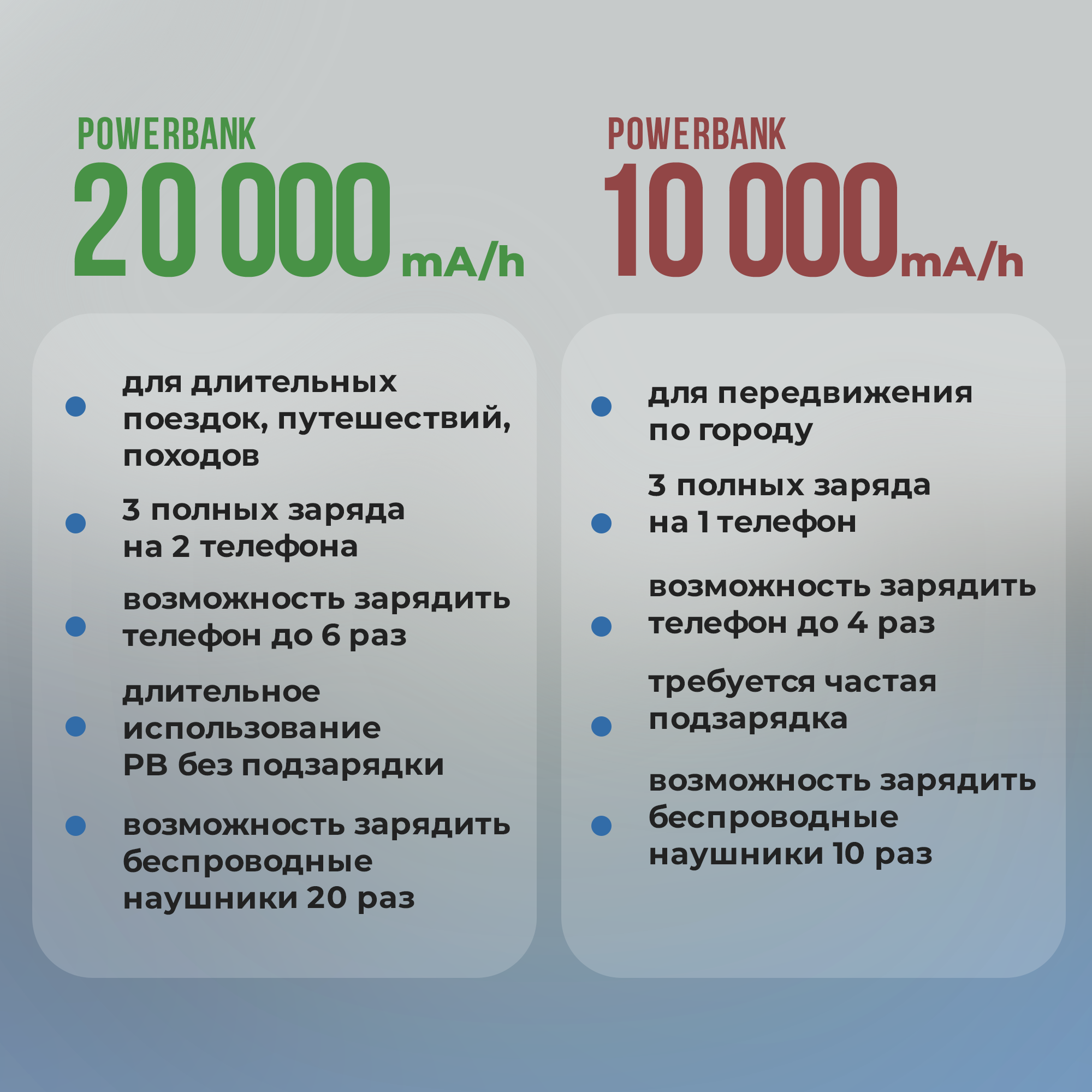 | Плюсы: | Отлично держит заряд, выручает при длительных поездках |