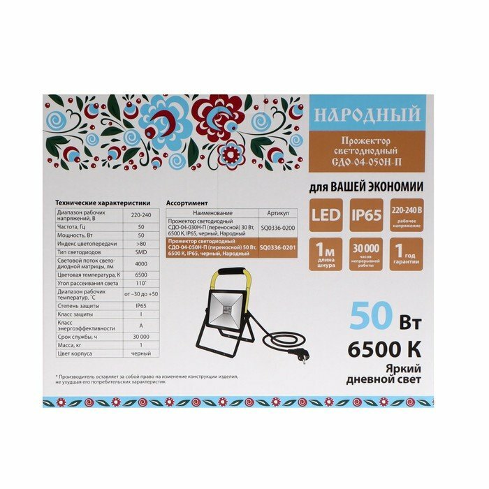 Ниже Вы можете прочитать отзывы на Прожектор LED СДО-04-050Н-П (переносной) 50 Вт, 6500 К, IP65, черный, Народный TDM SQ0336-0201, ознакомится с подробными характеристиками, посмотреть интересные обзоры и фотографии на Прожектор LED СДО-04-050Н-П (переносной) 50 Вт, 6500 К, IP65, черный, Народный TDM SQ0336-0201.