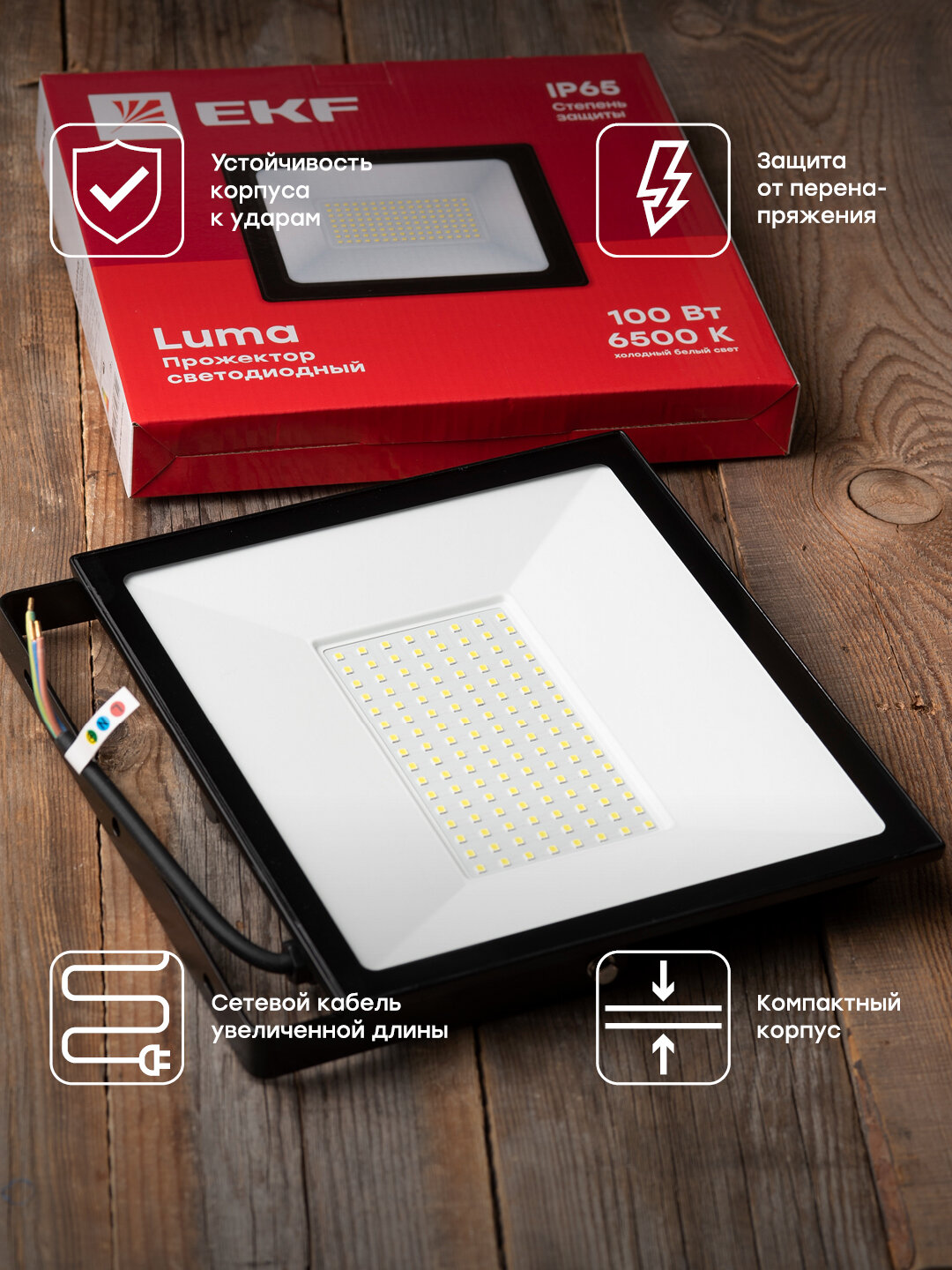 Прожектор светодиодный СДО-3007 150Вт 6500К IP65 LUMA EKF, световой поток 12000Лм, что соответствует галогеновой лампе мощностью 600Вт*