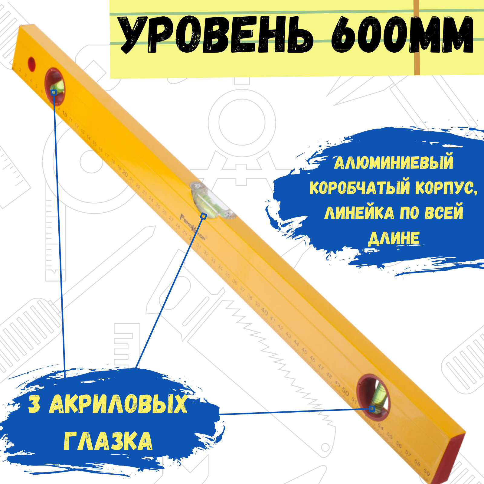 Уровень строительный 60 см, 3 глазка, алюминий коробчатый корпус, линейка РемоКолор 17-0-006 интересное: