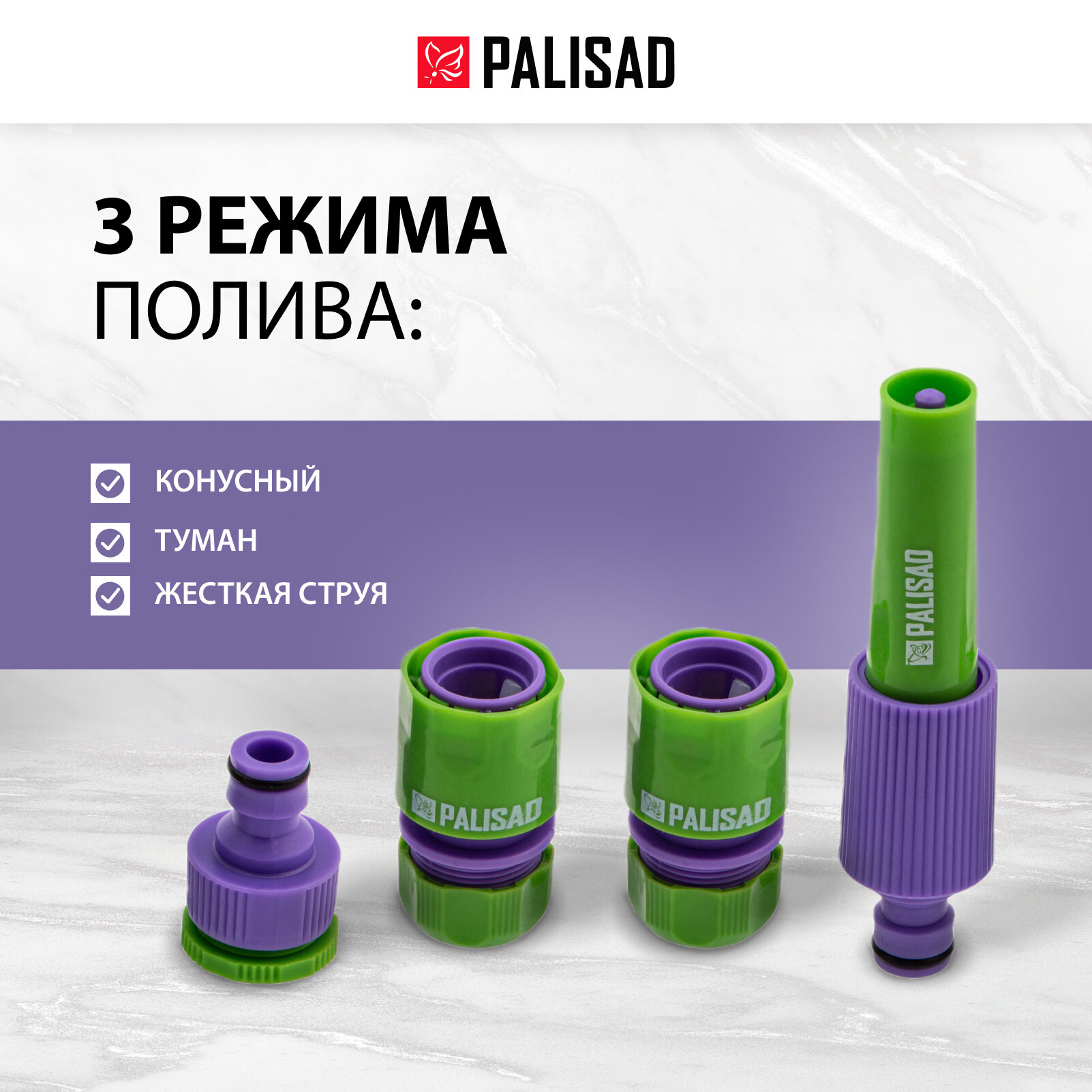 Набор для подключения шланга 1/2, распылитель, 3 адаптера к распылителю Palisad