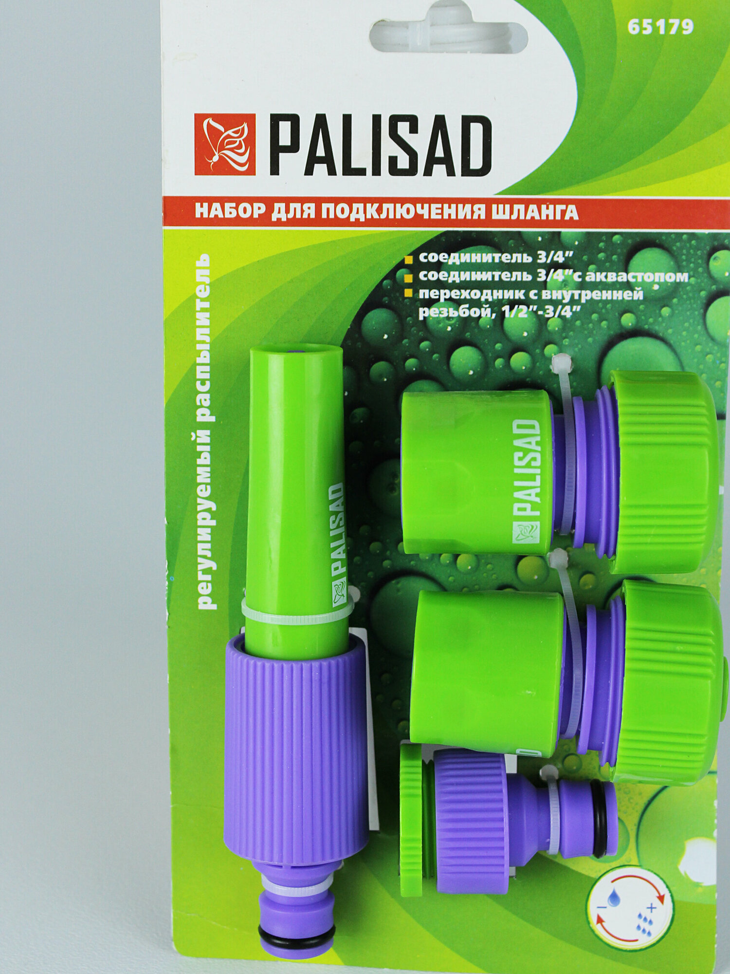 Набор для подключения шланга 3/4, распылитель, 3 адаптера к распылителю Palisad (65179)