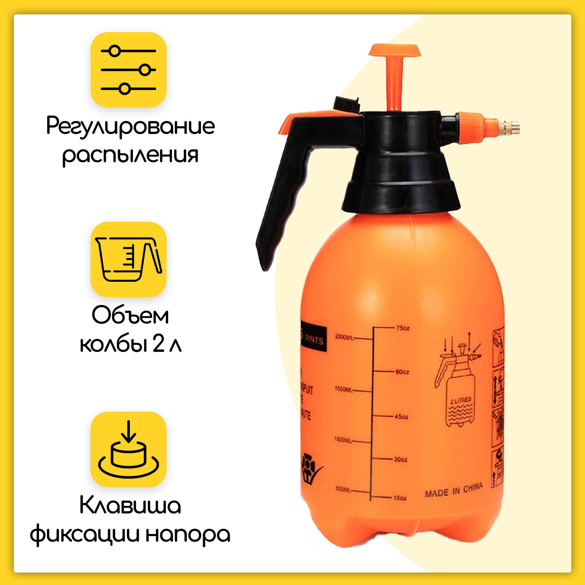 Купить Пульверизатор 2000 мл, опрыскиватель садовый, распылитель помповый, с регулируемой форсункой, оранжевый
