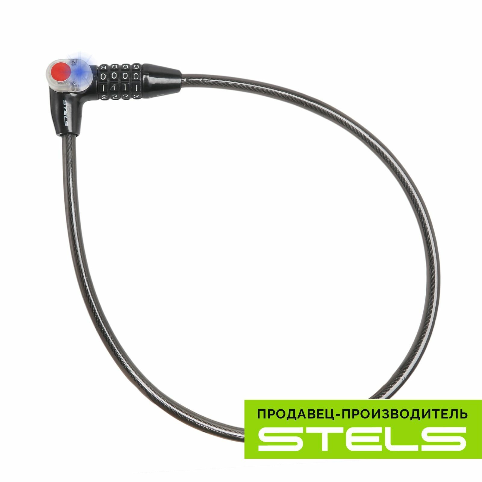 Трос-замок STELS 10х800мм 84608 с кодовым замком с подсветкой со стальным тросом, чёрный NEW