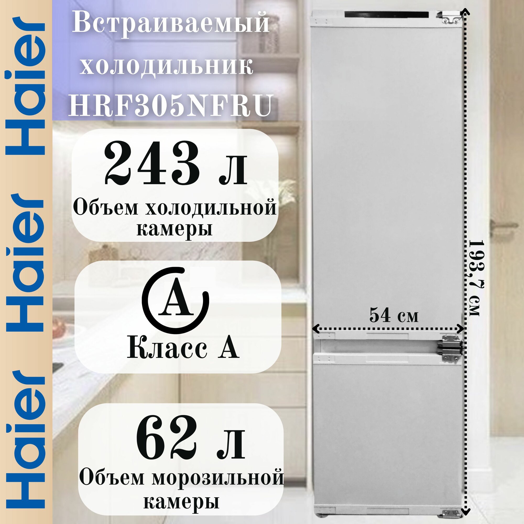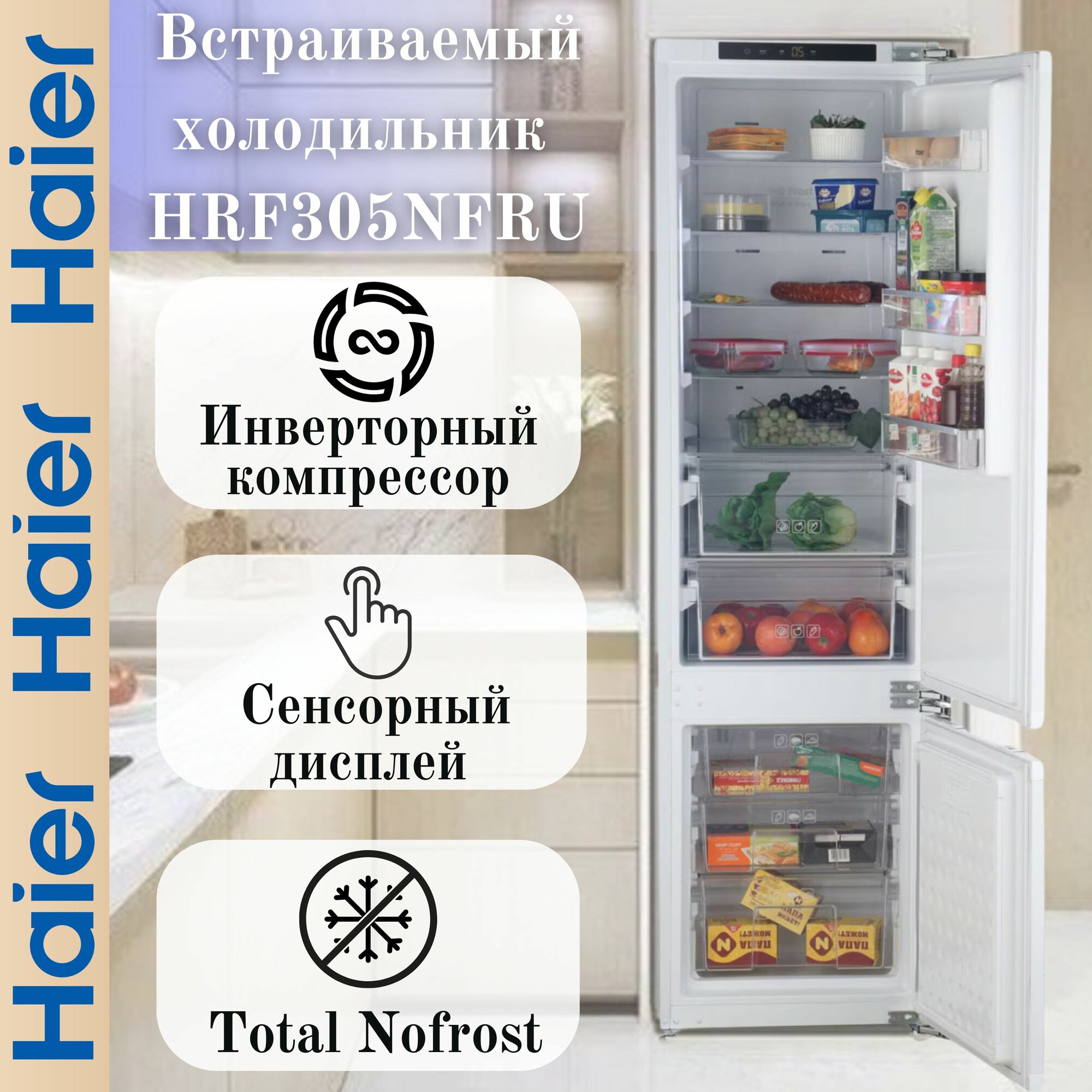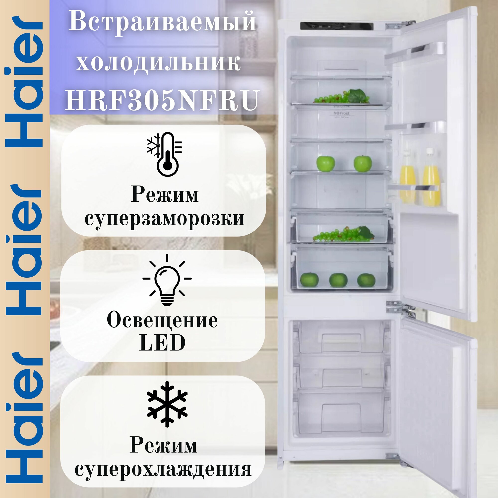 Встраиваемый двухкамерный холодильник Haier HRF305NFRU интересное: