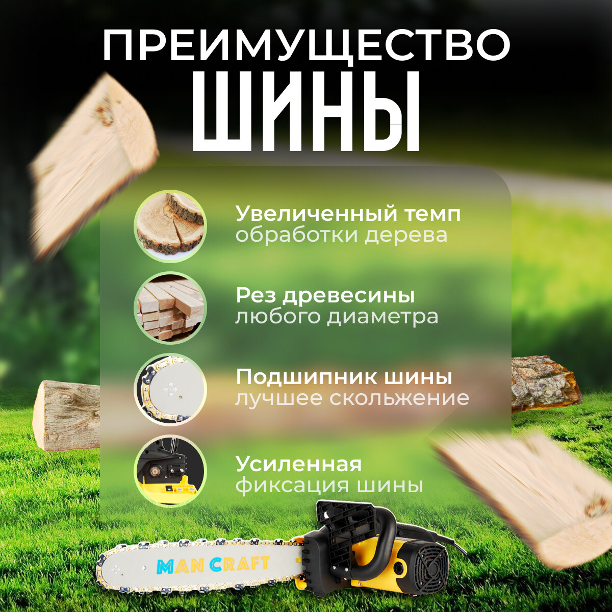 Электропила цепная MANCRAFT 1600 Вт, пила электрическая для дачи и сада, в подарок очки и перчатки