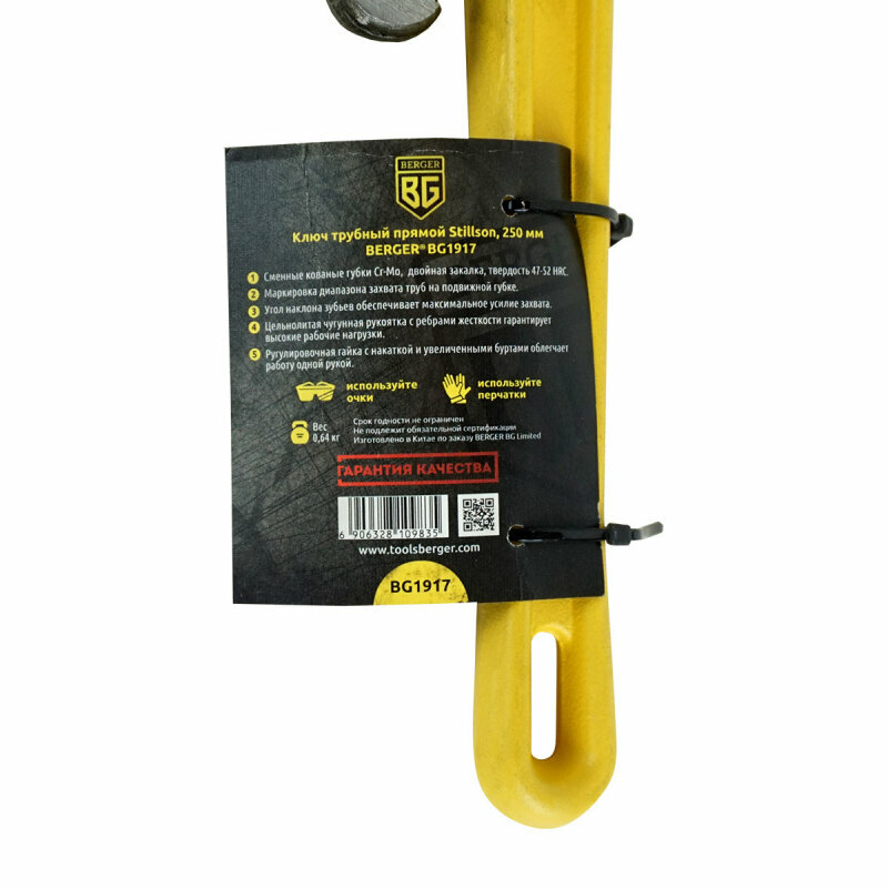 Ключ трубный прямой BERGER BG1917 Stillson, 245-290 мм, 1 1/2", Cr-Mo / чугун (BERGER)
