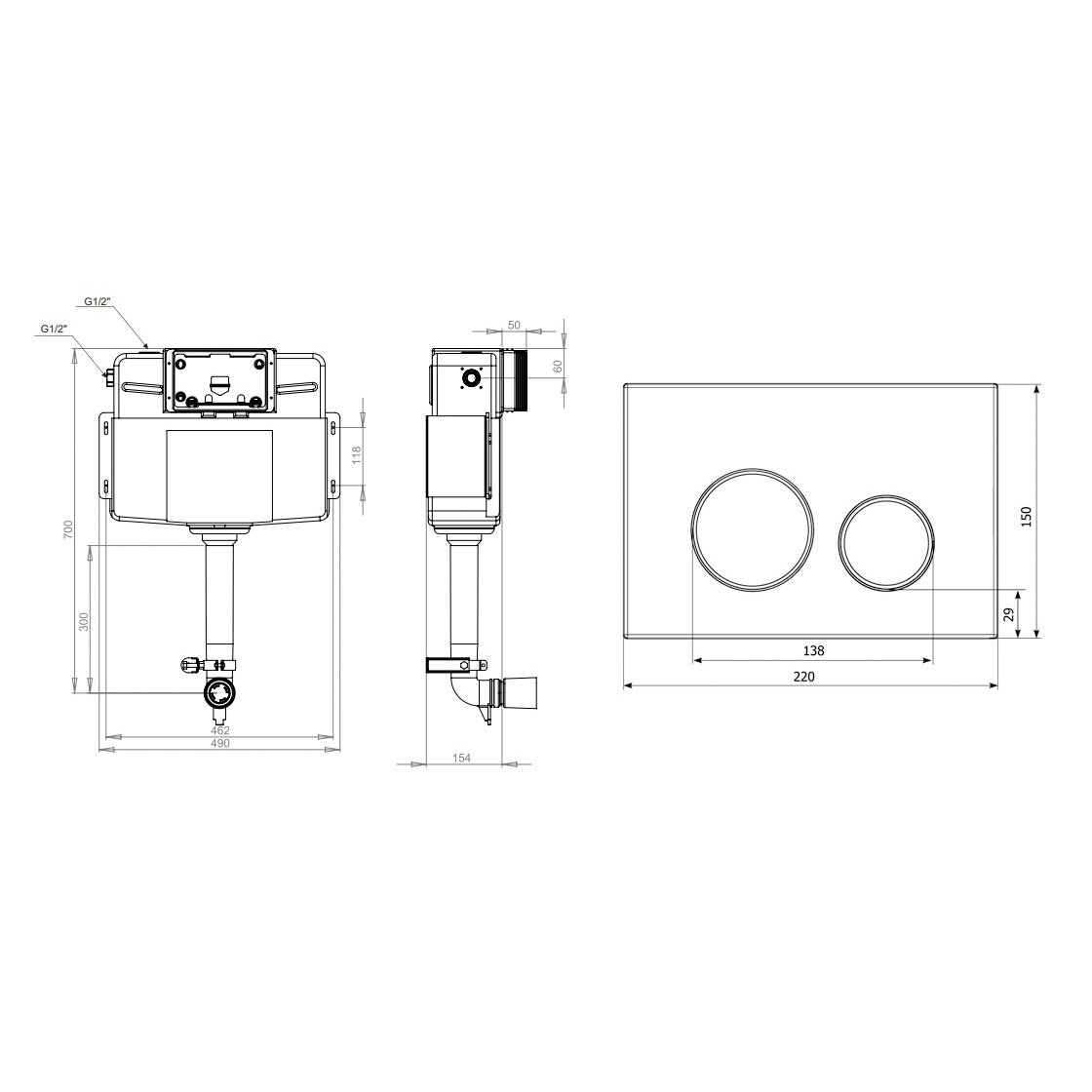 Инсталляция для приставного унитаза Lavinia Boho RelFix 77030050 в комплекте 2 в 1: бачок скрытого монтажа с креплением, кнопка смыва