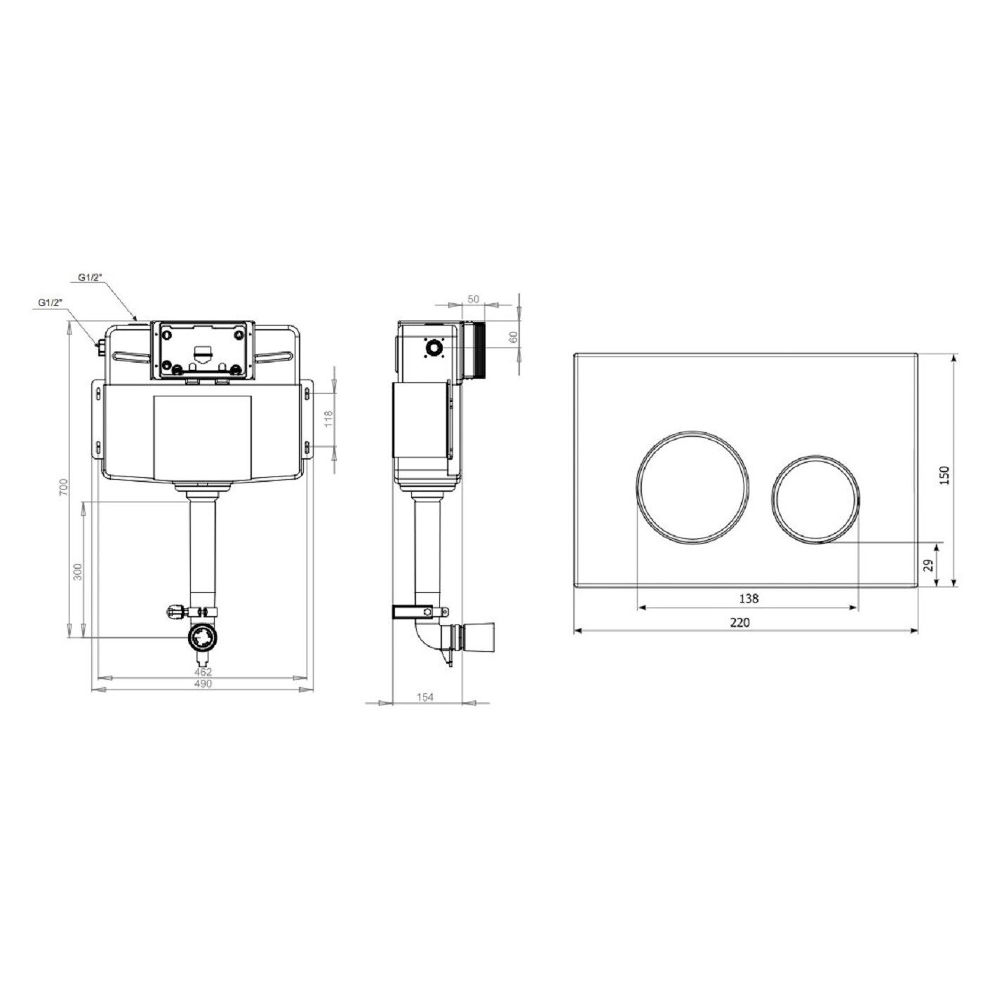 Инсталляция для приставного унитаза Lavinia Boho RelFix 77030050 в комплекте 2 в 1: бачок скрытого монтажа с креплением, кнопка смыва