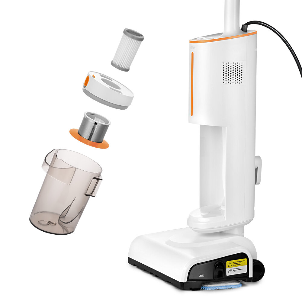 Купить Вертикальный паровой пылесос Kitfort КТ-5157-2 (2 в 1, бело-оранжевый)