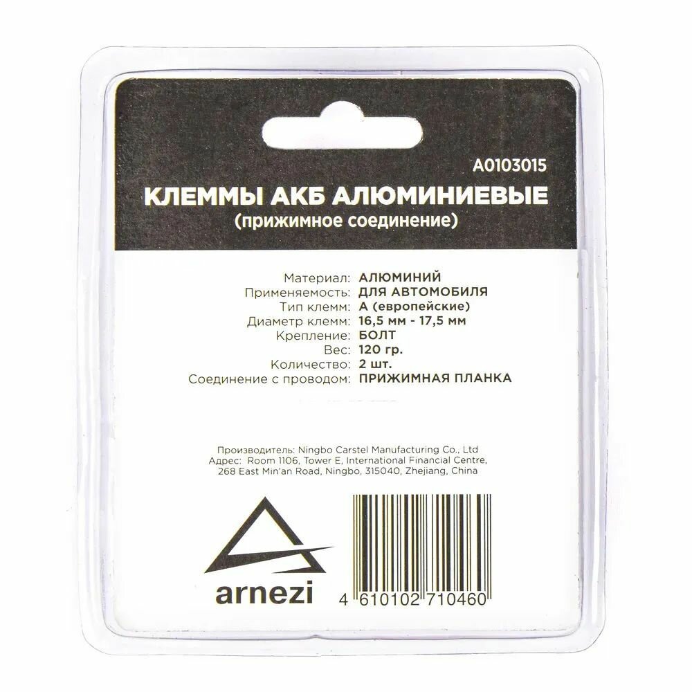 Клеммы АКБ алюминиевые 2шт, прижимная планка ARNEZI A0103015 интересное: