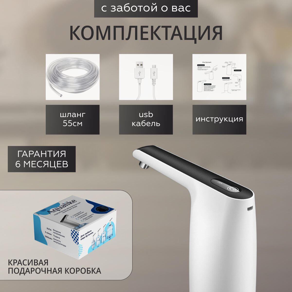 Помпа для воды электрическая на бутыль 19 литров Aqualike интересное:
