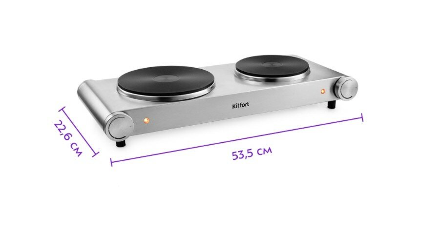 2. Быстрый нагрев чугунных конфорок. 3. Высокие устойчивые ножки, предотвращающие пригорание стола. 4. Приятный дизайн всей конструкции настольной электроплиты. |