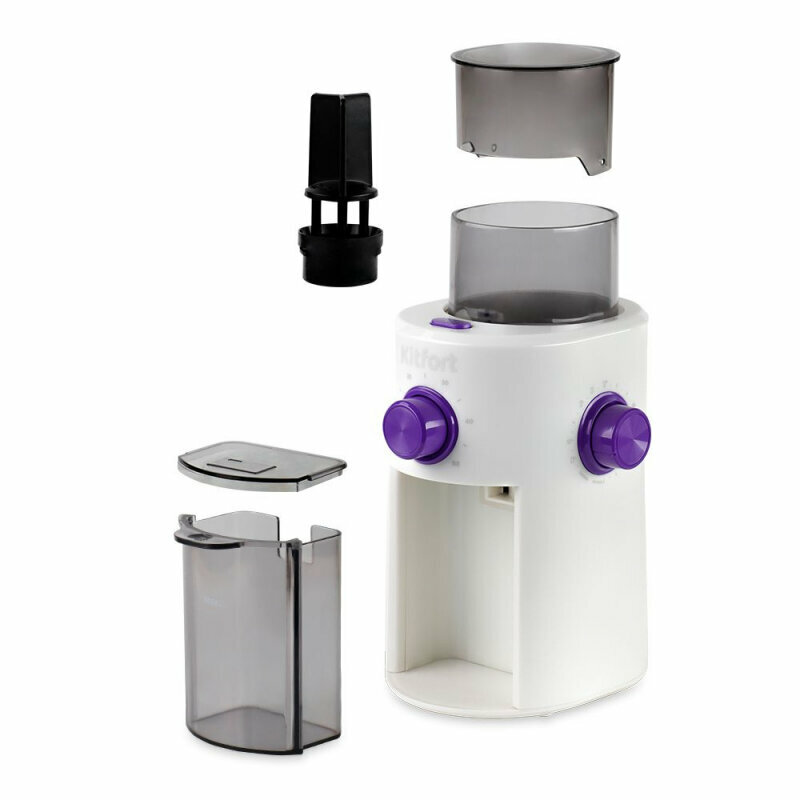 Кофемолка Kitfort КТ-7102 100Вт сист.помол.:жернова вместим.:150гр белый/фиолетовый
