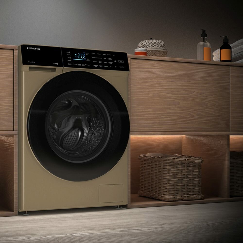 Купить Стиральная машина HIBERG i-DDQ9 - 812 G, инверторная, 8 кг загрузка, 1200 об/мин, 16 программ, Smart wash, сенсорное управление, Золотистый