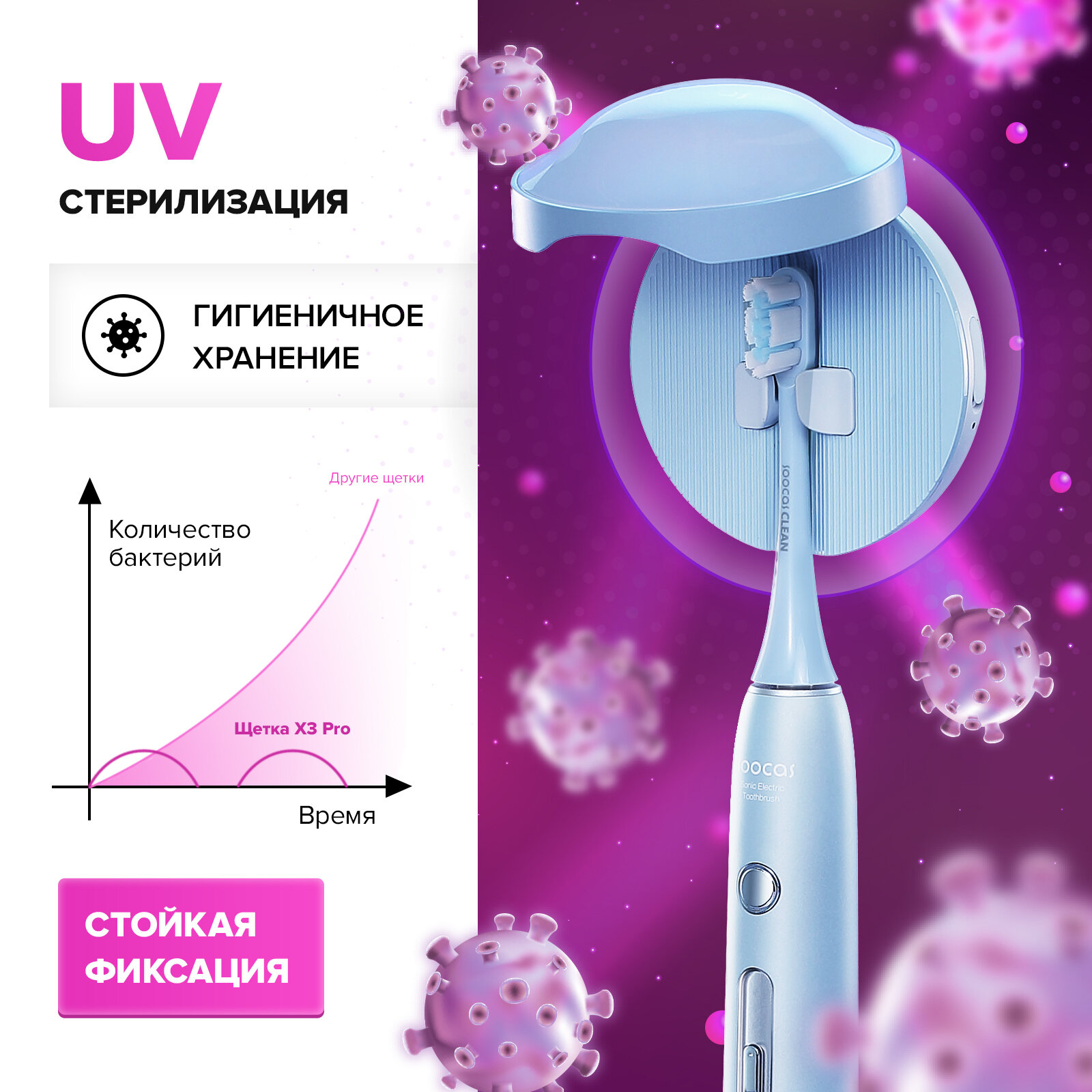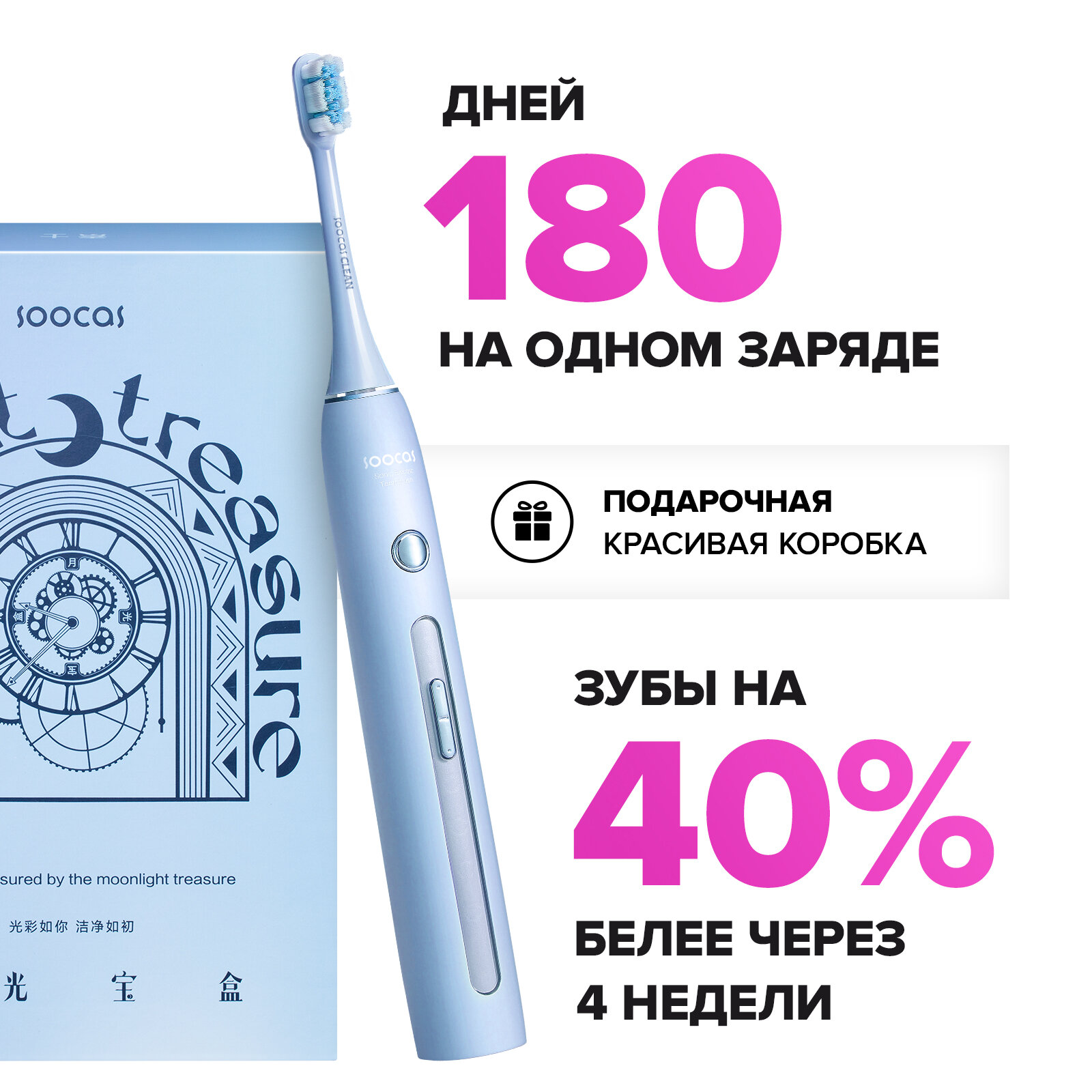 электрическая зуб щетка SOOCAS X3Pro, со стерилизатором, две насадки, Голубой, Ростест (EAC) интересное: