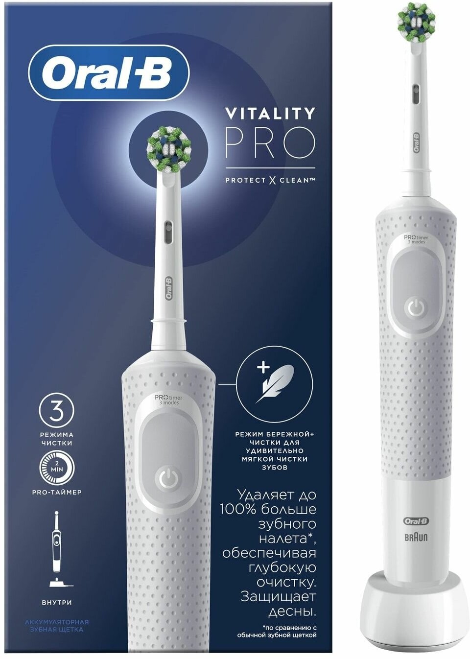 Электрическая зубная щетка Vitality Pro D103.413.3 White интересное: