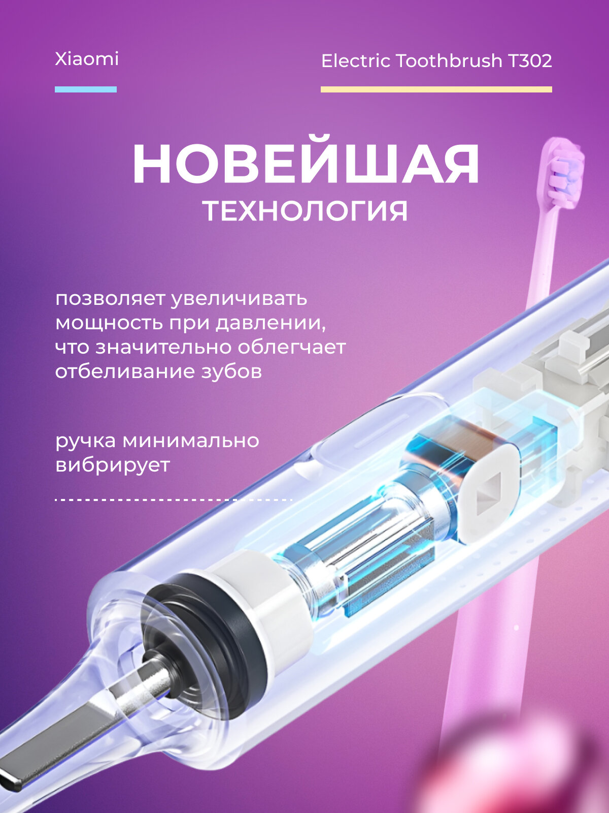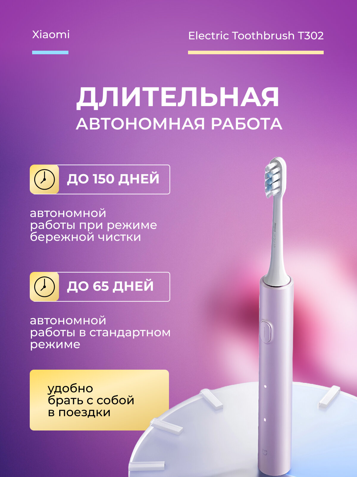 СохранитьЭлектрическая зубная щётка Xiaomi Mijia Toothbrush T302 Purple (MES608) интересное: