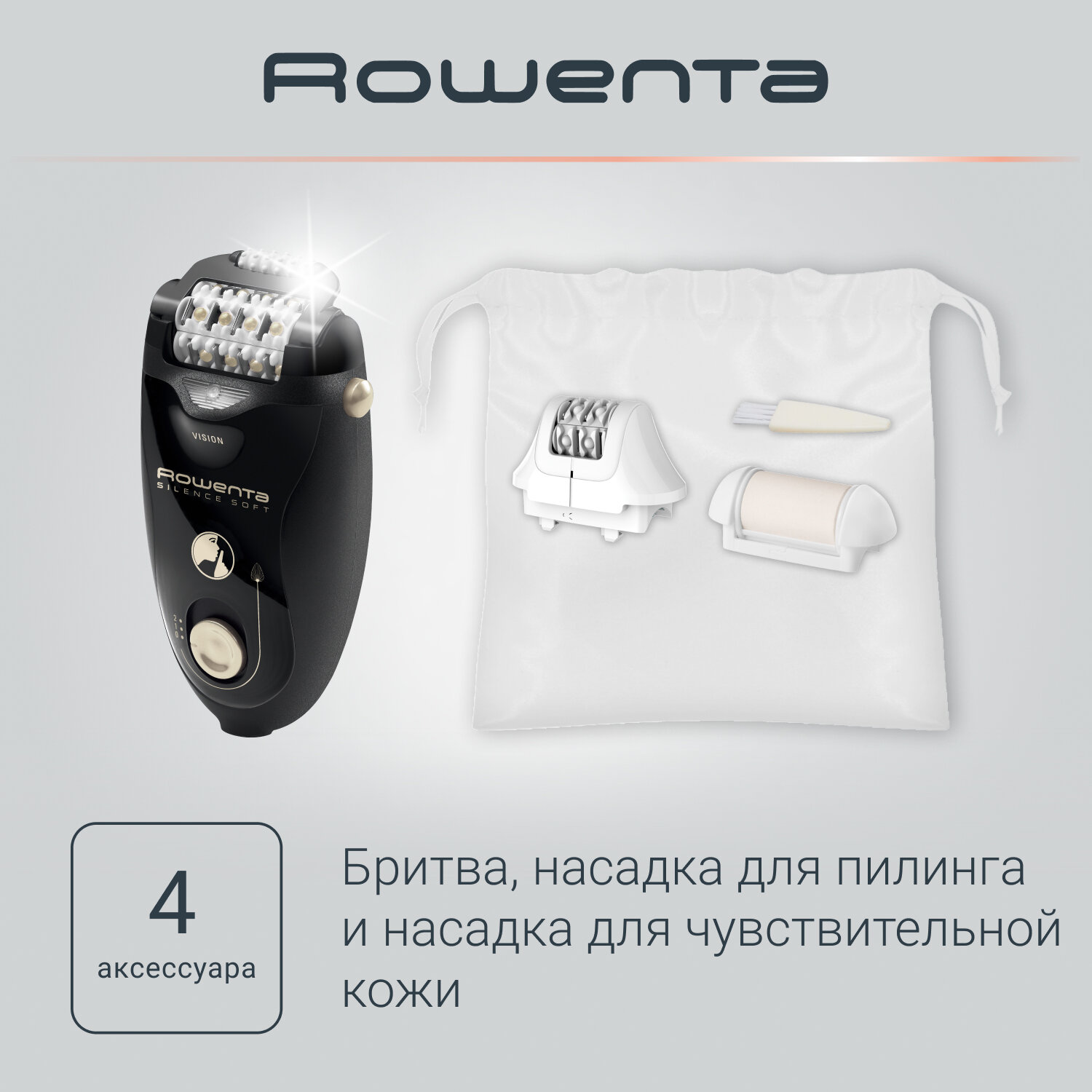 Эпилятор женский Rowenta Silence Soft EP5625F0, для удаления волос, с пинцетами из нержавеющей стали