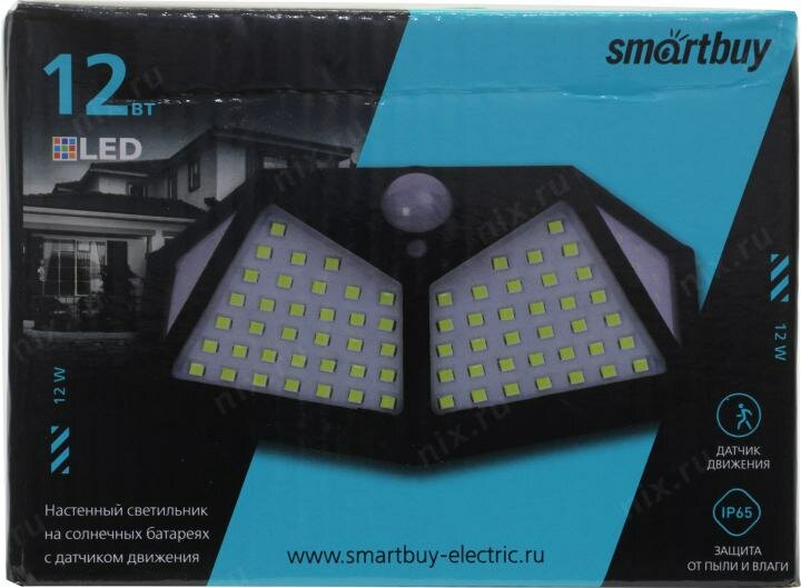 SmartBuy Настенный светильник 12Вт 100LED, на солнечных батареях, датч. движ, черный SBF-33-MS