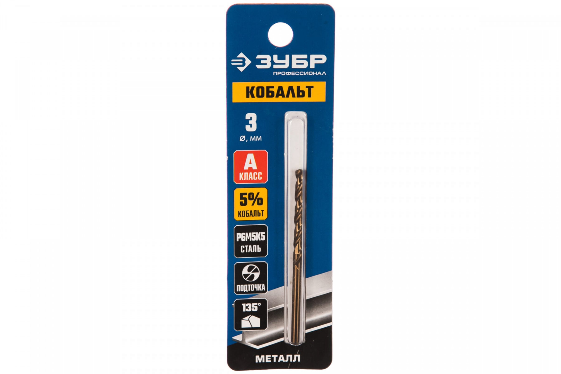 ЗУБР кобальт 3.0х61мм, Сверло по металлу, сталь Р6М5, класс А, 29626-3, Серия Профессионал