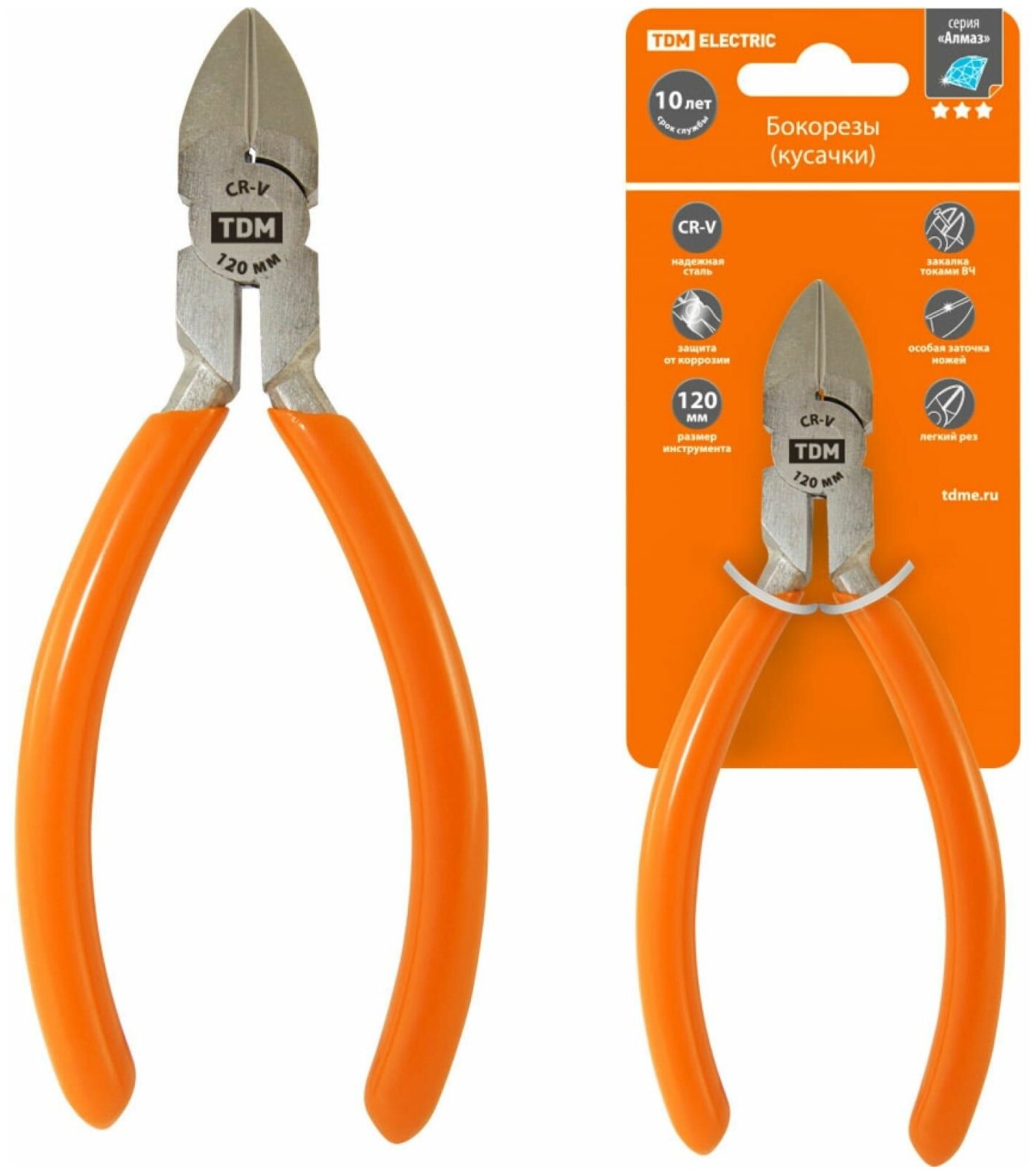 Бокорезы TDM ELECTRIC с однокомпонентными рукоятками, CR-V сталь, 120 мм, серия "Алмаз" (SQ1012-0201)
